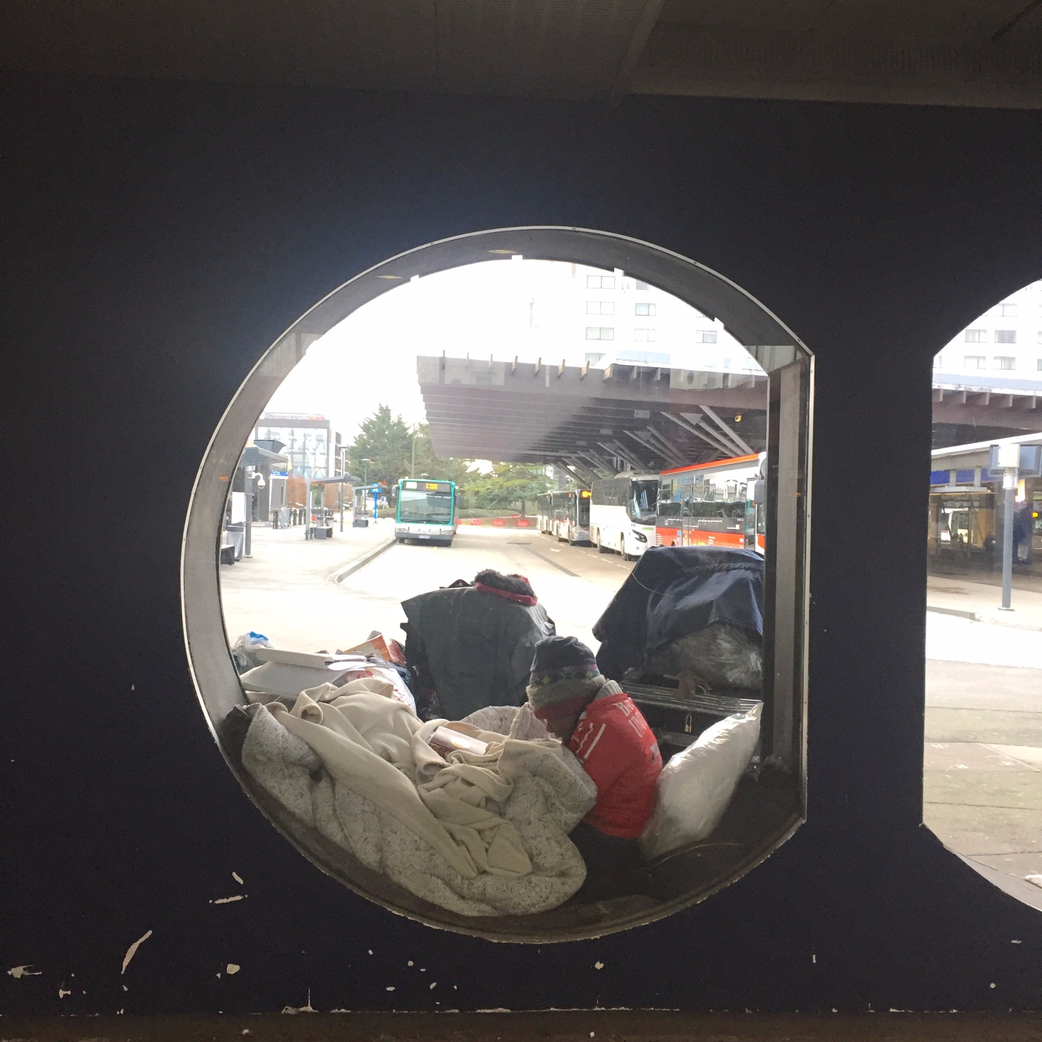 这是一家二手房交易中心,清早天未亮时仍在街头流浪,无家可归的人对“家”的渴望写在眼睛里。