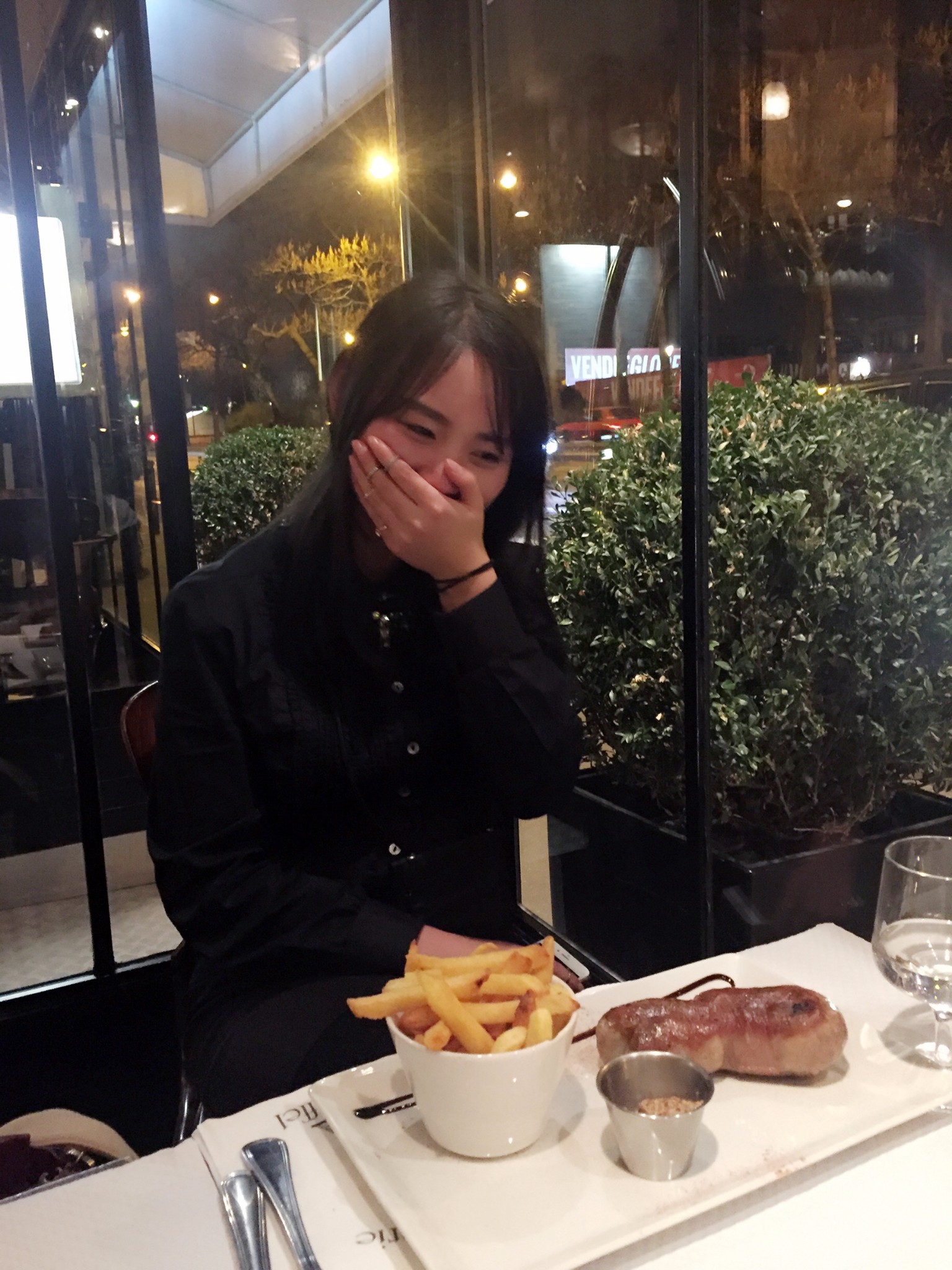 接下来的几天,我们对“吃”的要求越来越低,从“热的,有肉”到“咸的”到“能吃就好”,却一次次被挑战底线。嗜甜如命的我排了三小时长队等一份香奈儿小姐最爱的Angelina栗子蛋糕和热可可,被蛋糕的甜腻刺激到,浓稠如巧克力糖浆的热可可相比之下已经是酸苦的口感。耗尽巨资和时间等来的美味害我跑到洗手间接水解渴,也是够狼狈了。