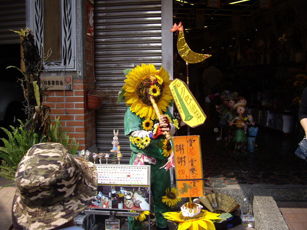街頭到處都有街頭藝人為您增添情調, 他可不僅是一朶花而已, 而是道道地地的一個人, 像向日葵一樣, 會隨著您擺動.