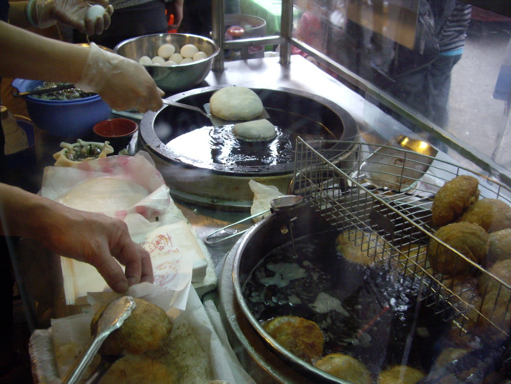 蚵仔包, 薄薄的皮,先煎過, 再炸過,再將合料用小尖筒"注"進包裏, 吃起來, 味道非常濃烈, 好吃.
