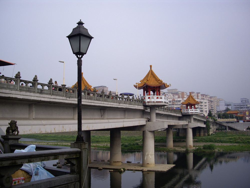 去鶯歌老街 , 搭火車是最方便的, 由鶯歌火車站走過來, 大概就十五分鐘, 圖裏遠方橫跨在鐵路上的黃色建築, 就是鶯歌火車站.