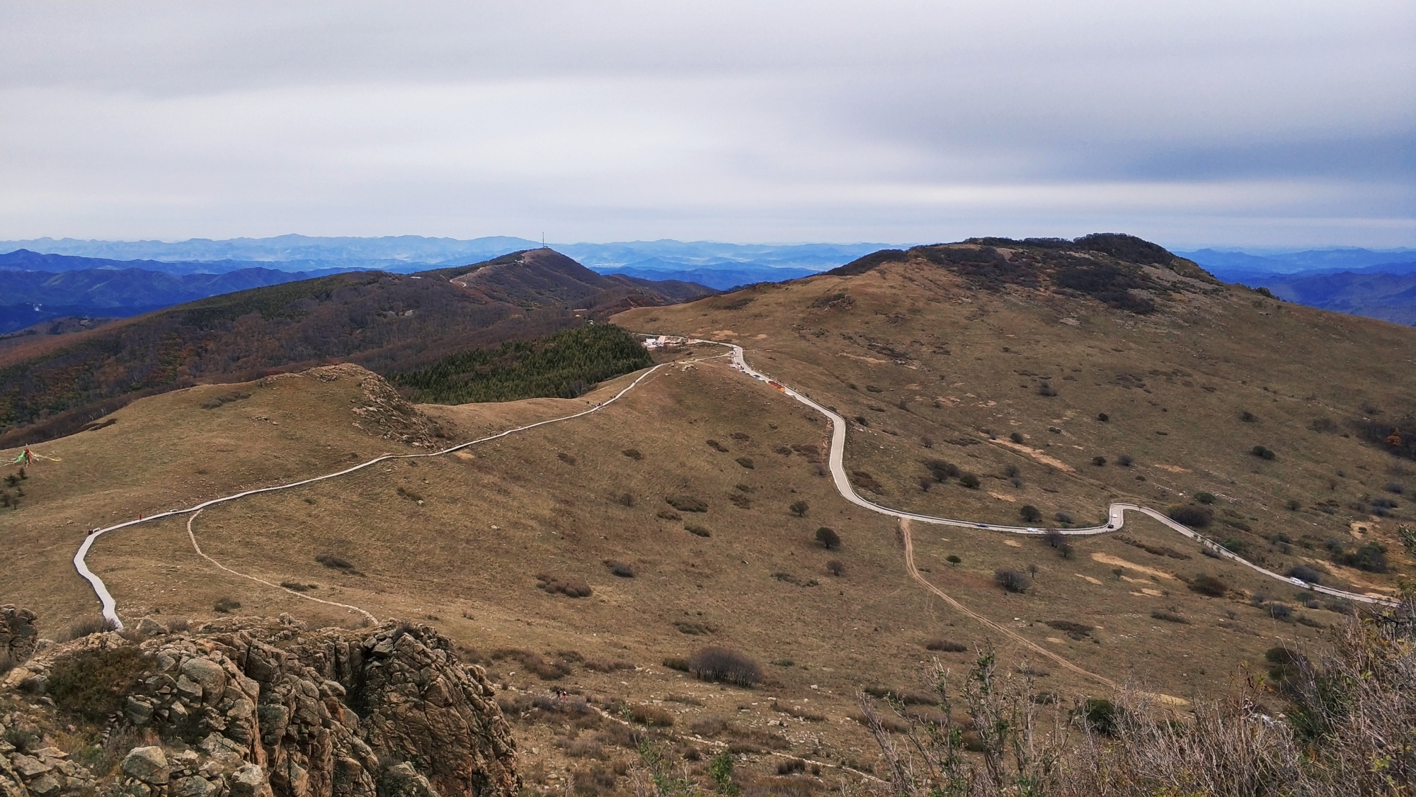 穿过小停车场继续向前,蜿蜒的山路通往马盂主峰。
