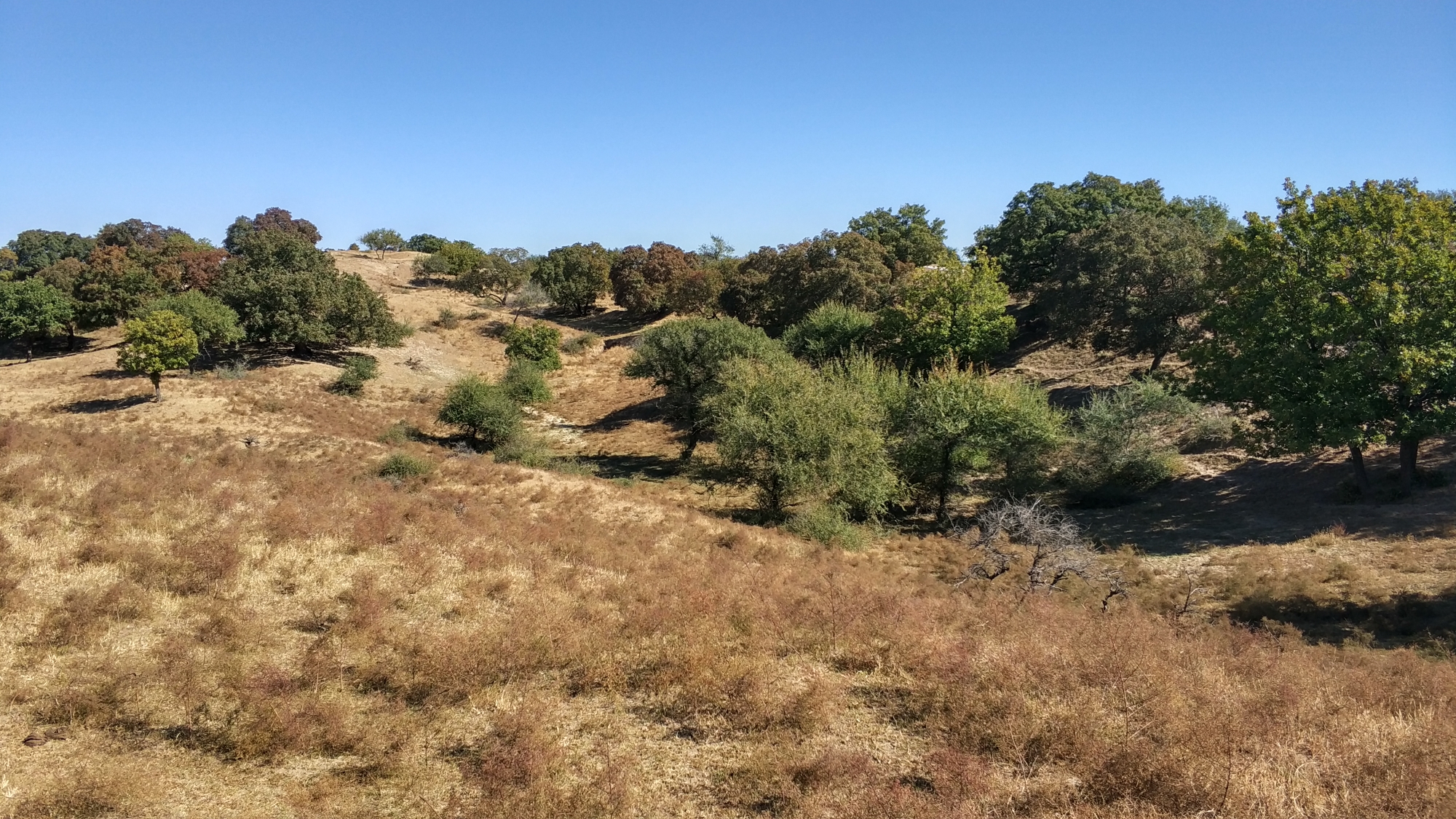 乌旦塔拉所在的科尔沁腹地荒漠化严重,薄草之下俱是黄沙。为保持水土,植有五角枫十万亩。来早了,叶还未红。