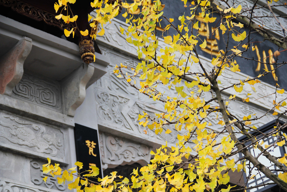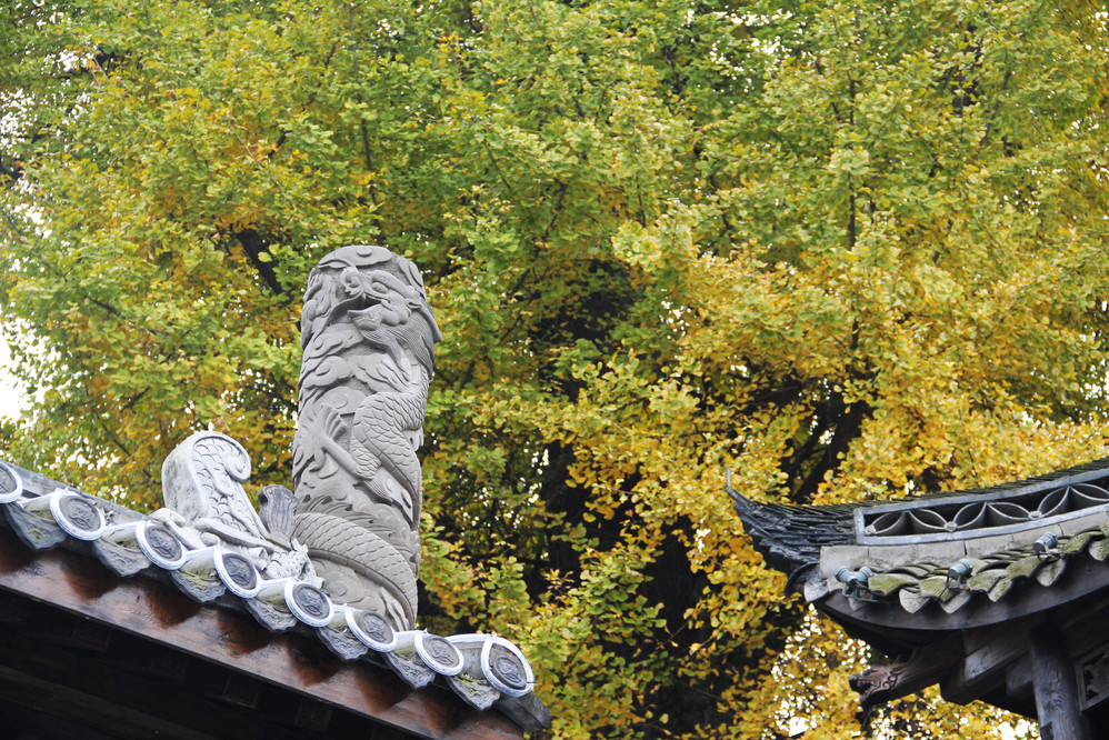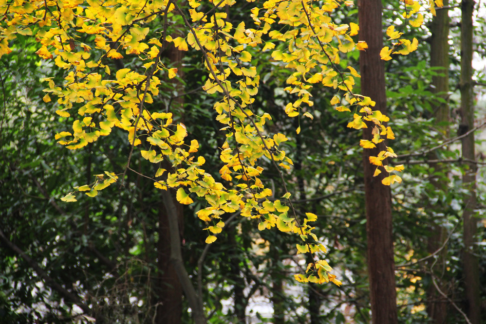 一路上尽是银杏树。