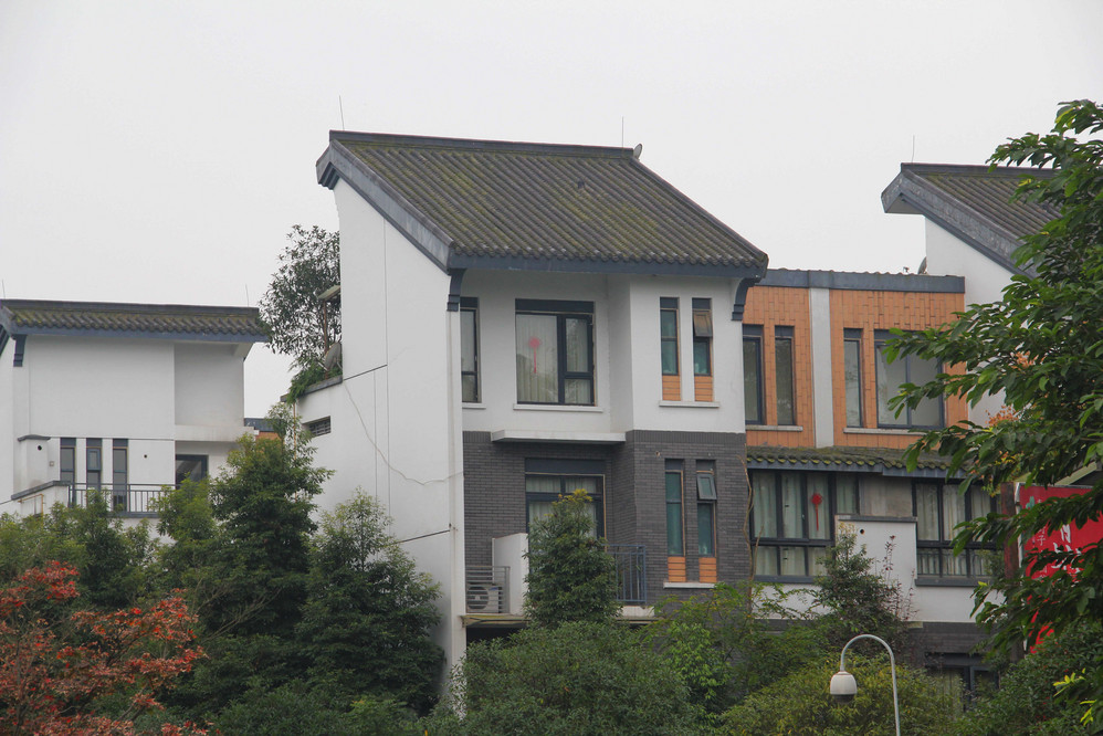 继续步行前往景区,发现路两边都是别墅,住在这里应该是件非常惬意的事,看看房价:RMB5000元+,还在感叹不贵的同时,又发现现房的空置率很高啊~