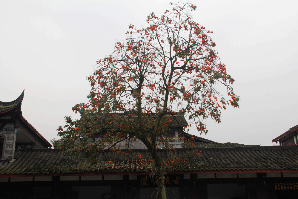 广场上的柿子树