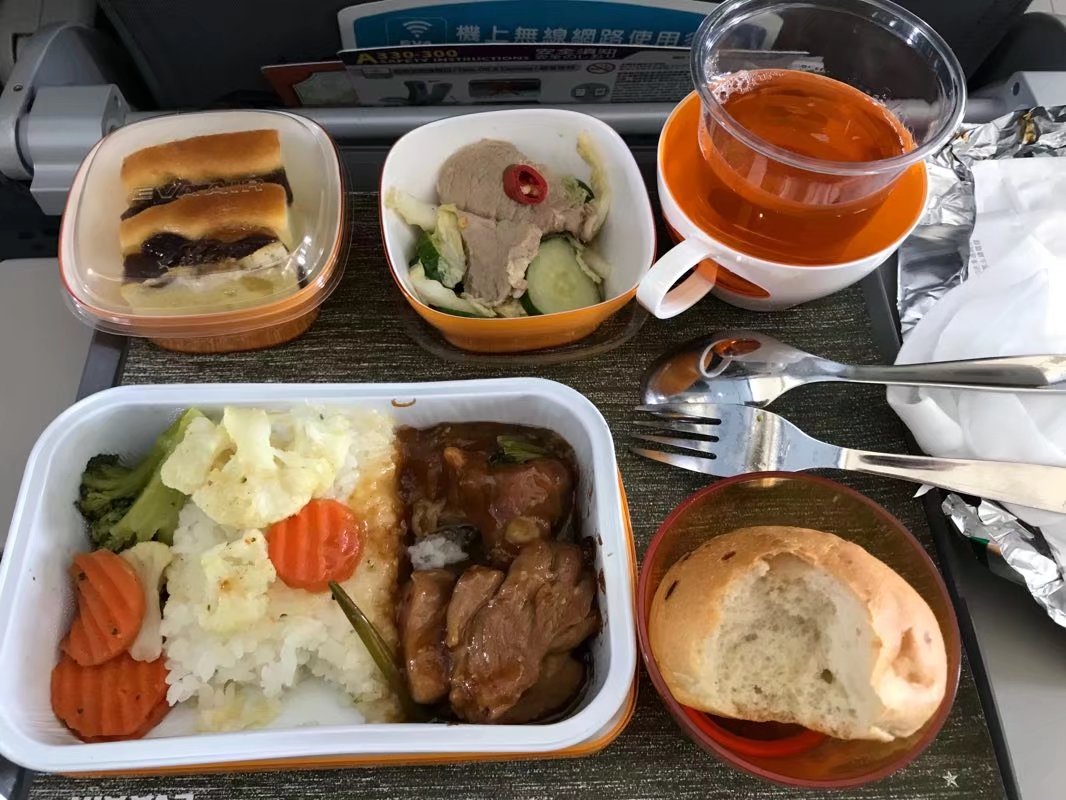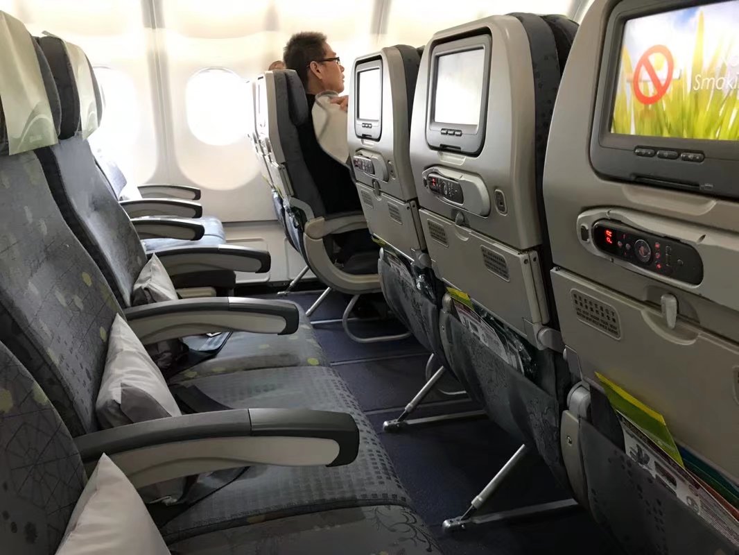 关于从大阪飞桃园的航空公司,选择的是长荣航空,第一次坐,印象很好,推荐。以前就经常在机场看到Eva Air,敢情是Ever Green Air,当天给了大灰机,而且空餐好吃尤其是葡萄干蜂蜜芝士蛋糕,空姐笑容满满,飞机上座位好空,我一个人包了一整排