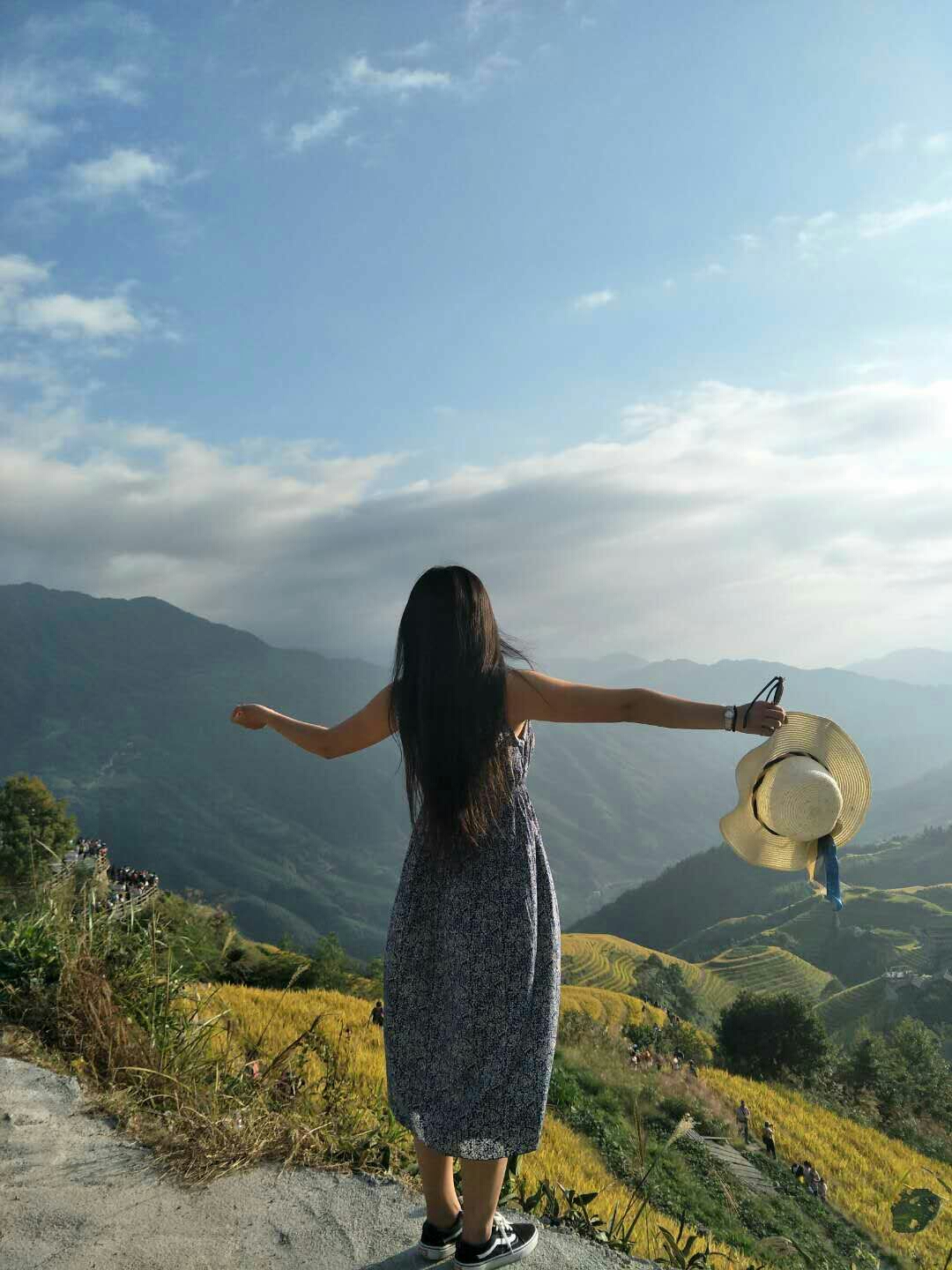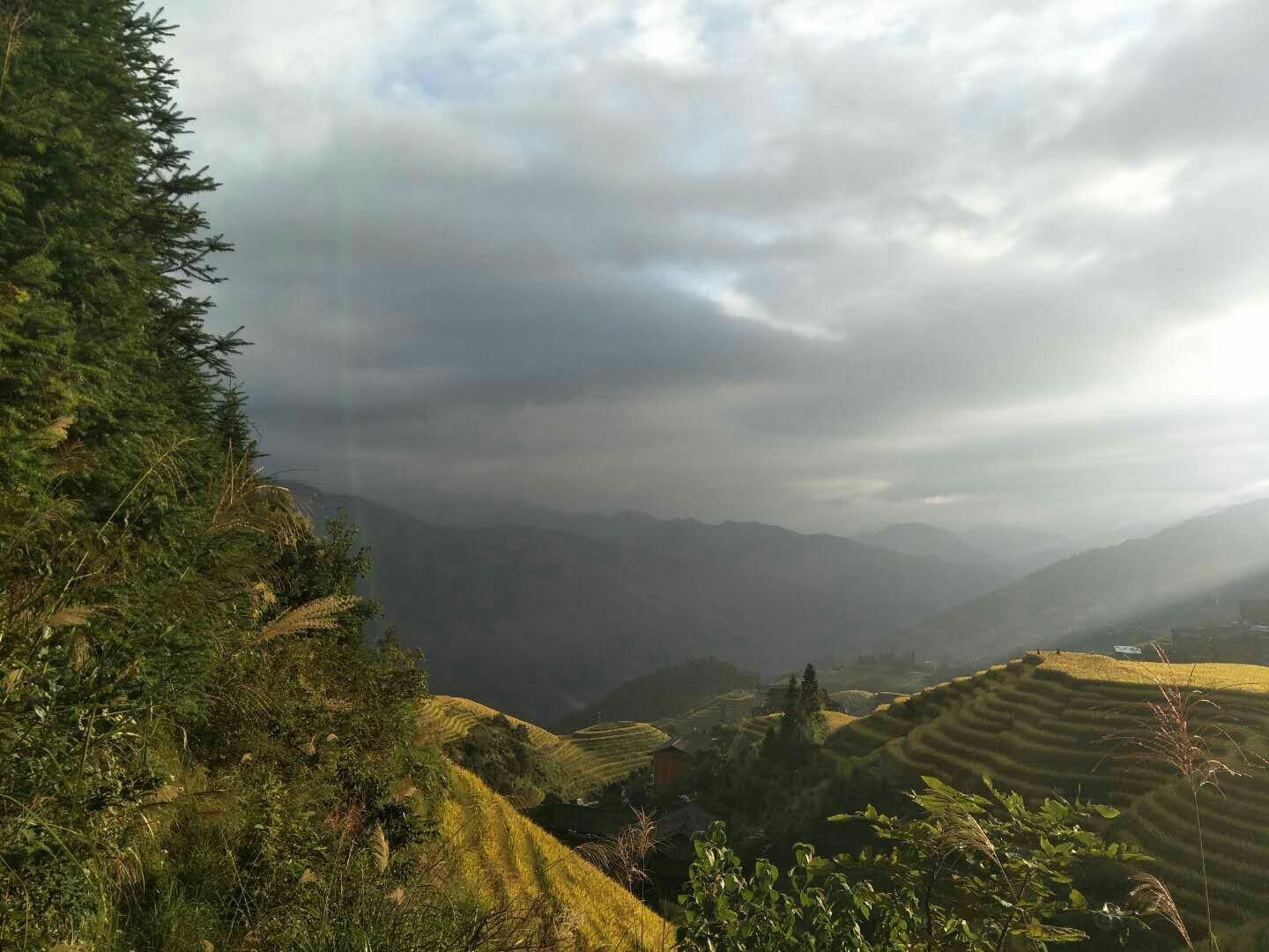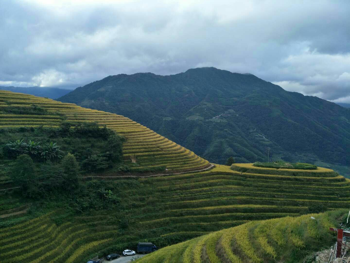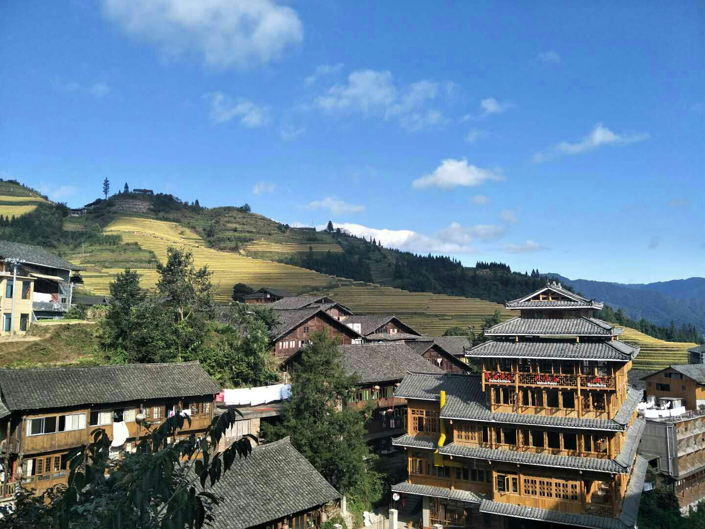 到了山脚下,我们便下车。老板娘说“你们等公交车或者班车就好了”。一脸懵的我们遇到了两位需要去桂林站搭动车回广州的小姐姐。拼车返程了。一路上互相分享了照片和这次旅行心得。小姐姐看了金坑佛顶,也坐了缆车。小姐姐玩了好多地方,也经历了好多,聊得不亦乐乎!su就是不吭声,我就是那个一直神采奕奕,精力旺盛的角色。车主平安古寨山行酒店老板,平安古寨人,像我们讲述平安是四寨子里面最美的景色。古壮寨比较清净接地气一些,平安夜景好看(可惜了,两个怕冷的人缩在被窝里)。金坑大寨里面有索道可以坐,俯览壮观的梯田,风吹层层麦浪。