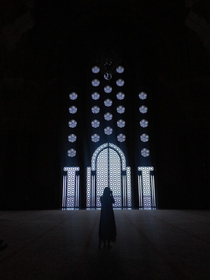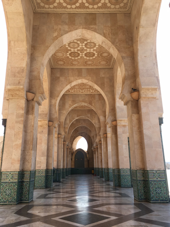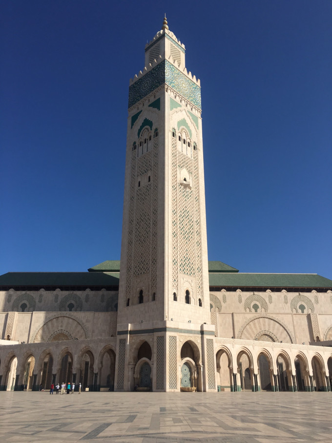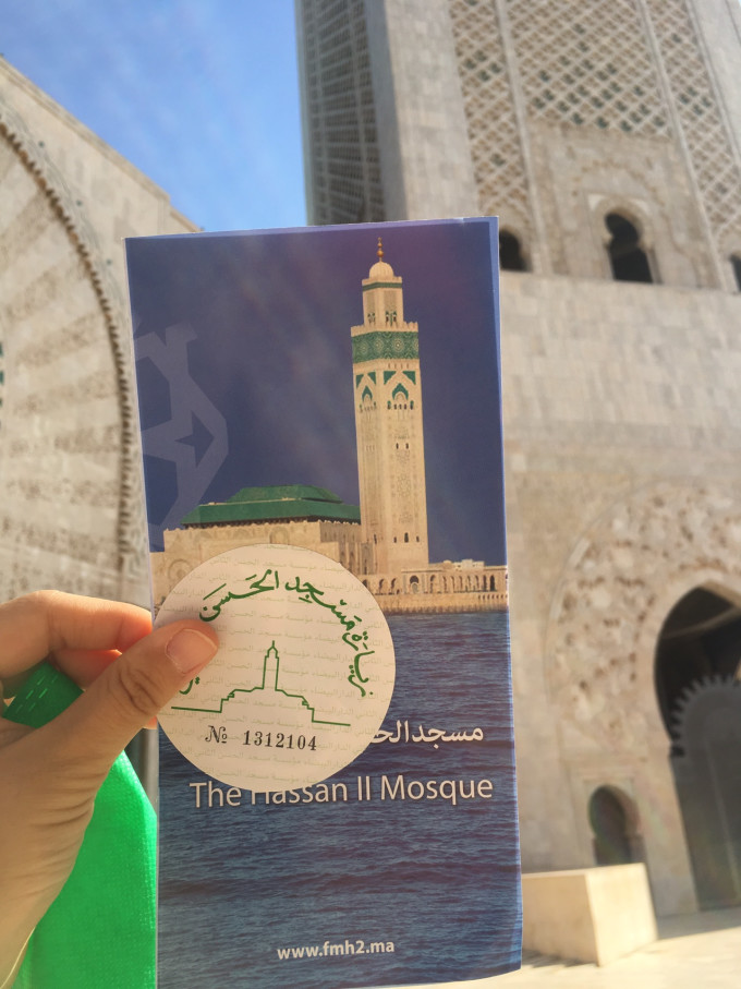 第二天一早傻眼了,换了司机和车,结果同伴的颈枕妥妥的落在了昨晚的车上。另外原本告知今天直接去拉巴特,我们就穿的随意了点,结果司机直接把我们拉到了哈桑二世清真寺。
