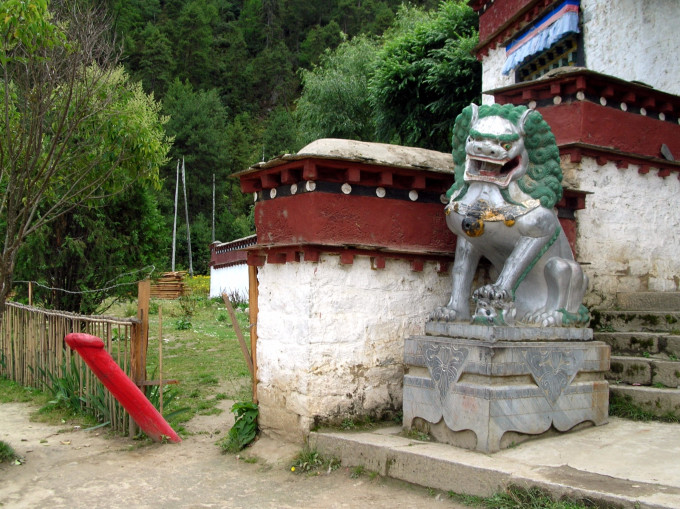 前年来林芝,因为去喇嘛岭寺的路没有修好而与他失之交臂,只去了巴松措。在巴松措的湖心岛上,有个错宗寺,是一个尼姑寺,大殿门外有木制的生殖图腾,据说和图腾合影会顺利生子。
