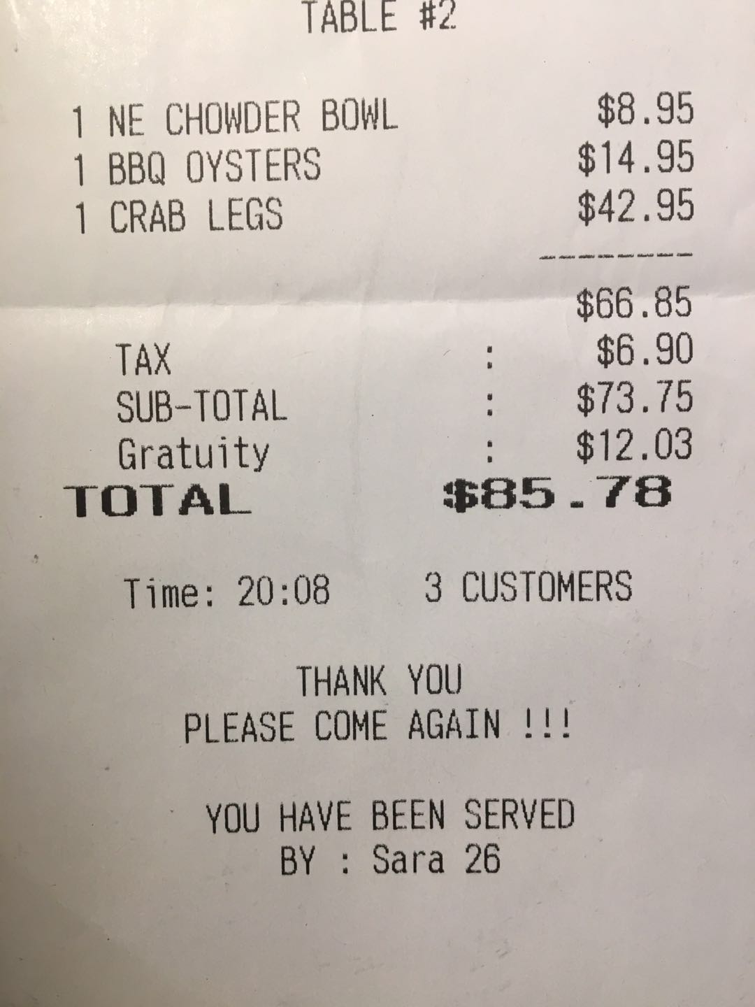另外需要注意的是,部分餐馆账单是自带小费的,这个栏目也能叫服务费(gratuity),如果你发现账单已经有这一项收费了,那么你就不需要再给小费了。
