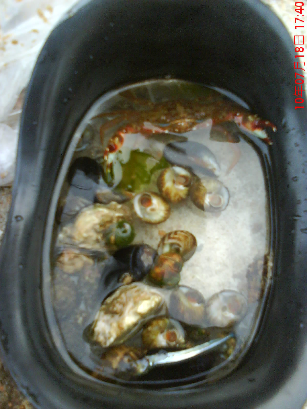 继续往前走,发现许多人都带着小桶,桶里面螃蟹海星什么都有,一个小男孩把海星给我看,这辈子第一次见到紫色的、活的会动的海星。