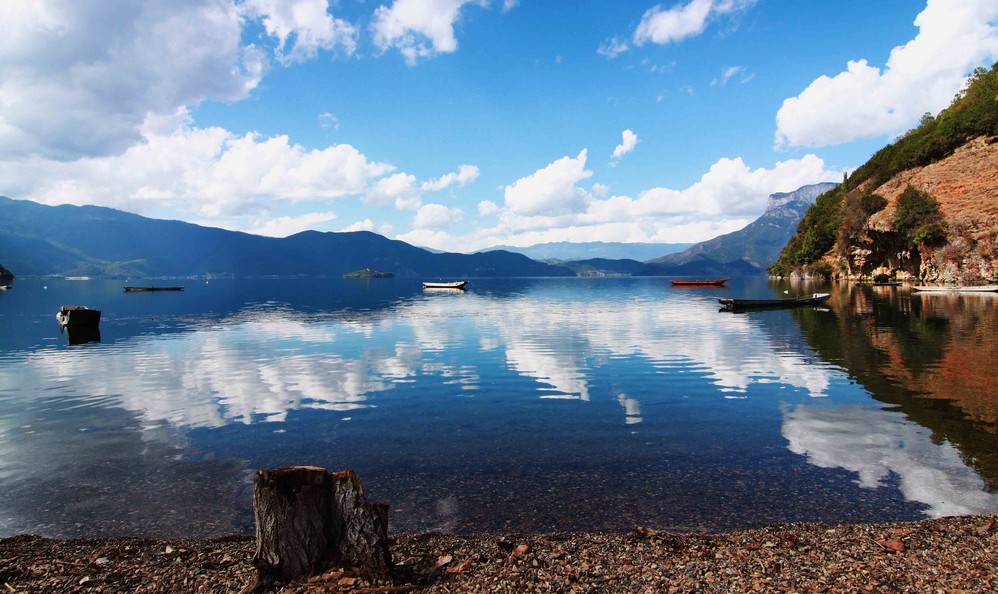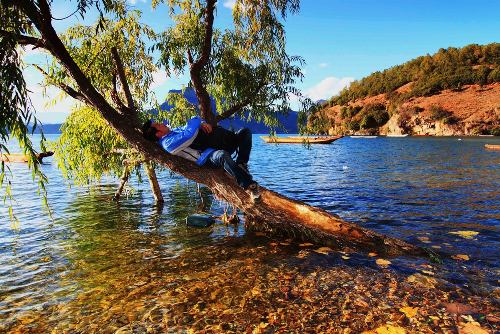 选择来到泸沽湖 ,应该想了好一些时间了,从照片里看到,这个地方有山有水,清澈的湖水被山围绕着,我知道这里就是我心目中的世外桃源 了。