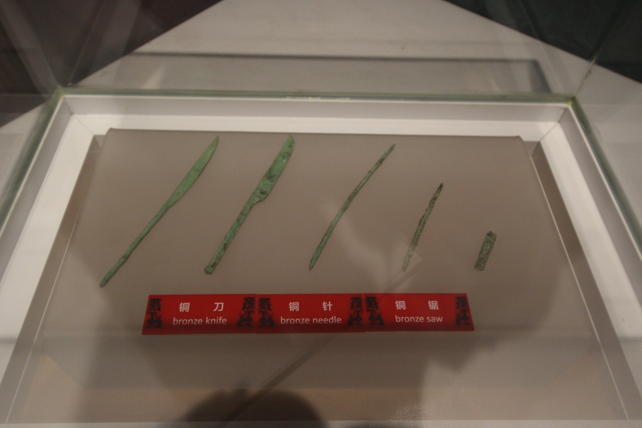 这铜刀主要是用来在甲骨上钻孔和刻字的,铜针是缝衣针、当时也有了铜锯。