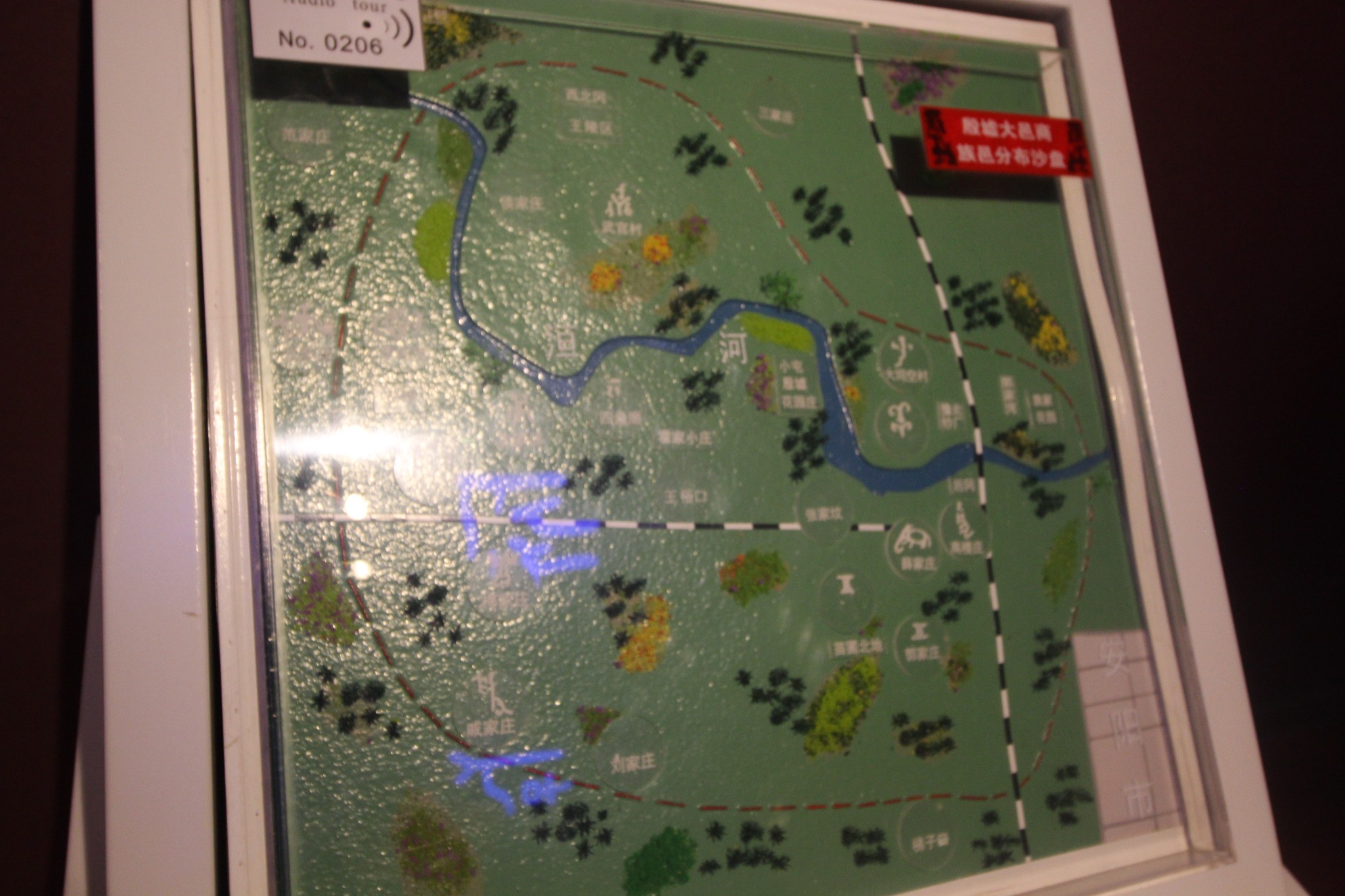 殷墟占地面积约24平方公里,大致分为宫殿区、王陵区、一般墓葬区、手工业作坊区、平民居住区和奴隶居住区。古老的洹河水从市中缓缓流过, 城市布局严谨合理。从其城市的规模、面积、宫殿的宏伟,出土文物的质量之精、之美、之奇、数量之巨、可充分证明它当时不仅是全国,而且是东方政治、经济、文化中心。 1987年在古老的洹水岸边修建了殷墟博物苑。它占地100多亩,就建在殷墟的宫殿区遗址上。它是依照甲骨文的“门”字形,用几根雕有商代纹饰的木柱和横梁结构而成。苑中建筑由著名的古建筑家设计,严格地构筑在原建筑的遗址上。每座建筑都采用了重檐草顶,夯土台阶,檐柱上雕以蝉龙等纹饰图案。 殷墟博物苑不仅展现了殷代王宫殿堂的布局与建筑,而且还具有园林特色。同时,它也是集考古、园林、古建、旅游为一体的胜地。