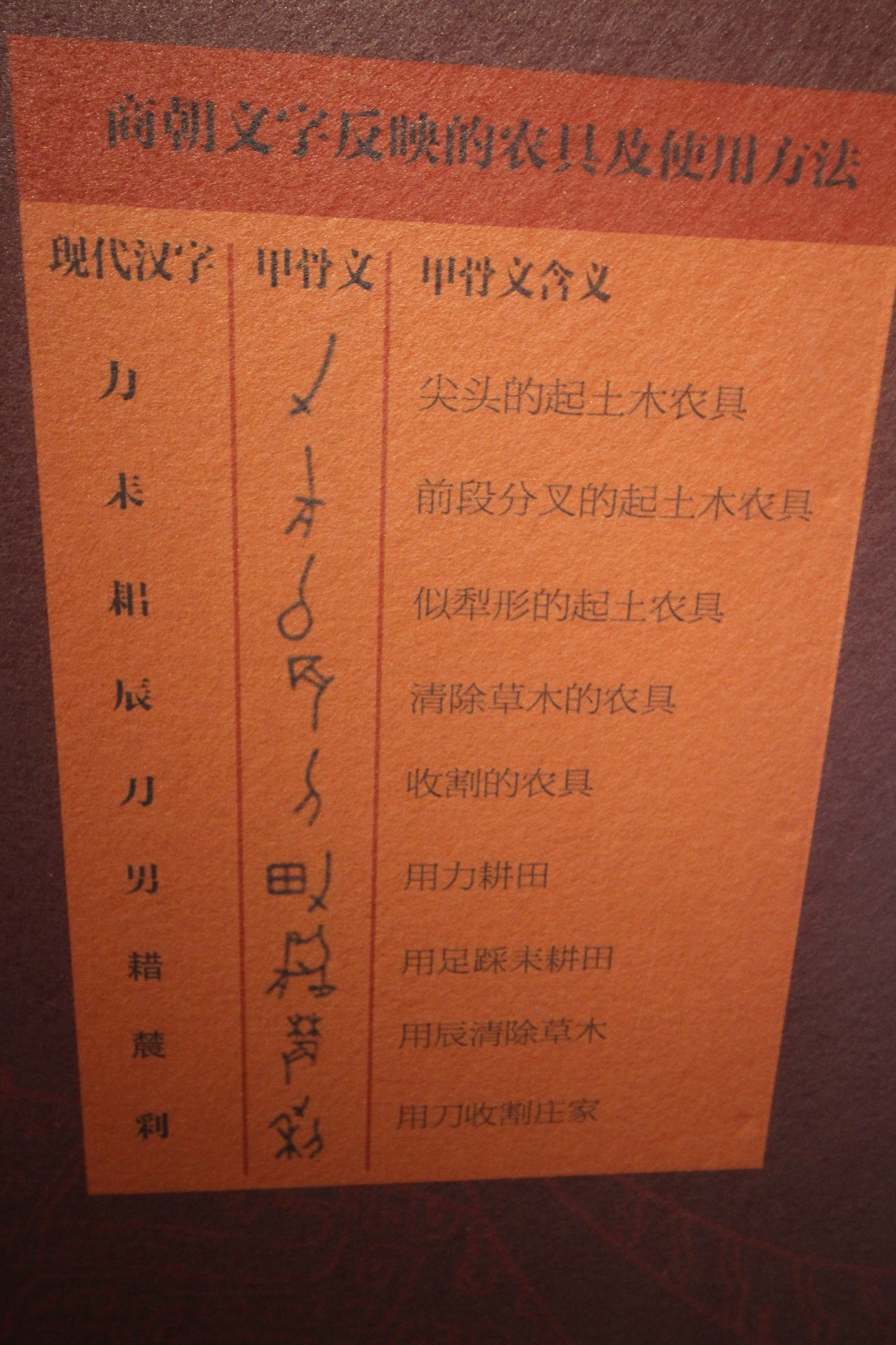 商代的农具和使用方法,甲骨文十分象形。见上图。当时已经有了翻土、除草和收割的农具。