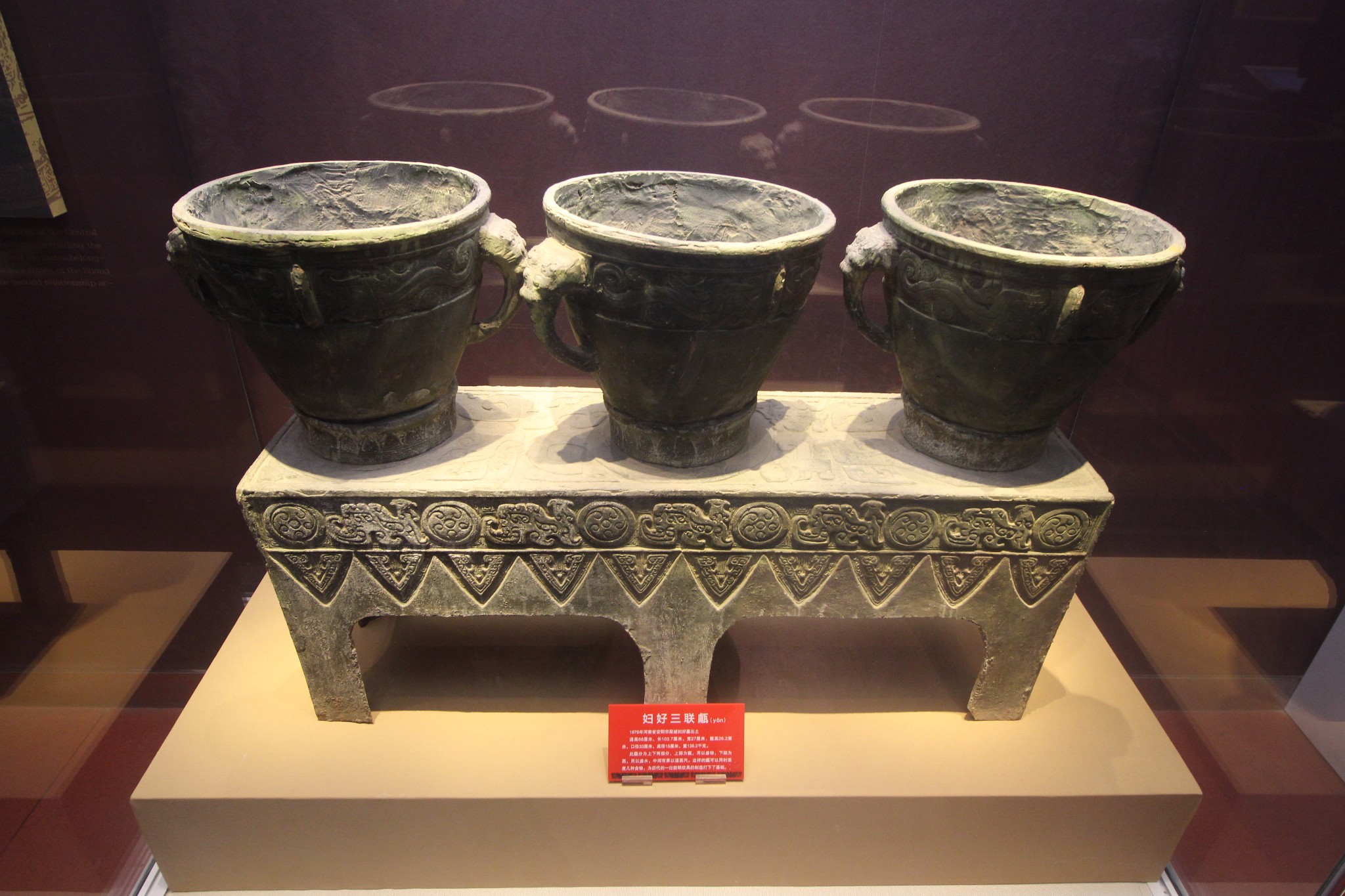 妇好三联甗。它是用来蒸煮饭食的锅。下方的孔洞是相通的。当时的中国人已经懂得利用水蒸气和节能。