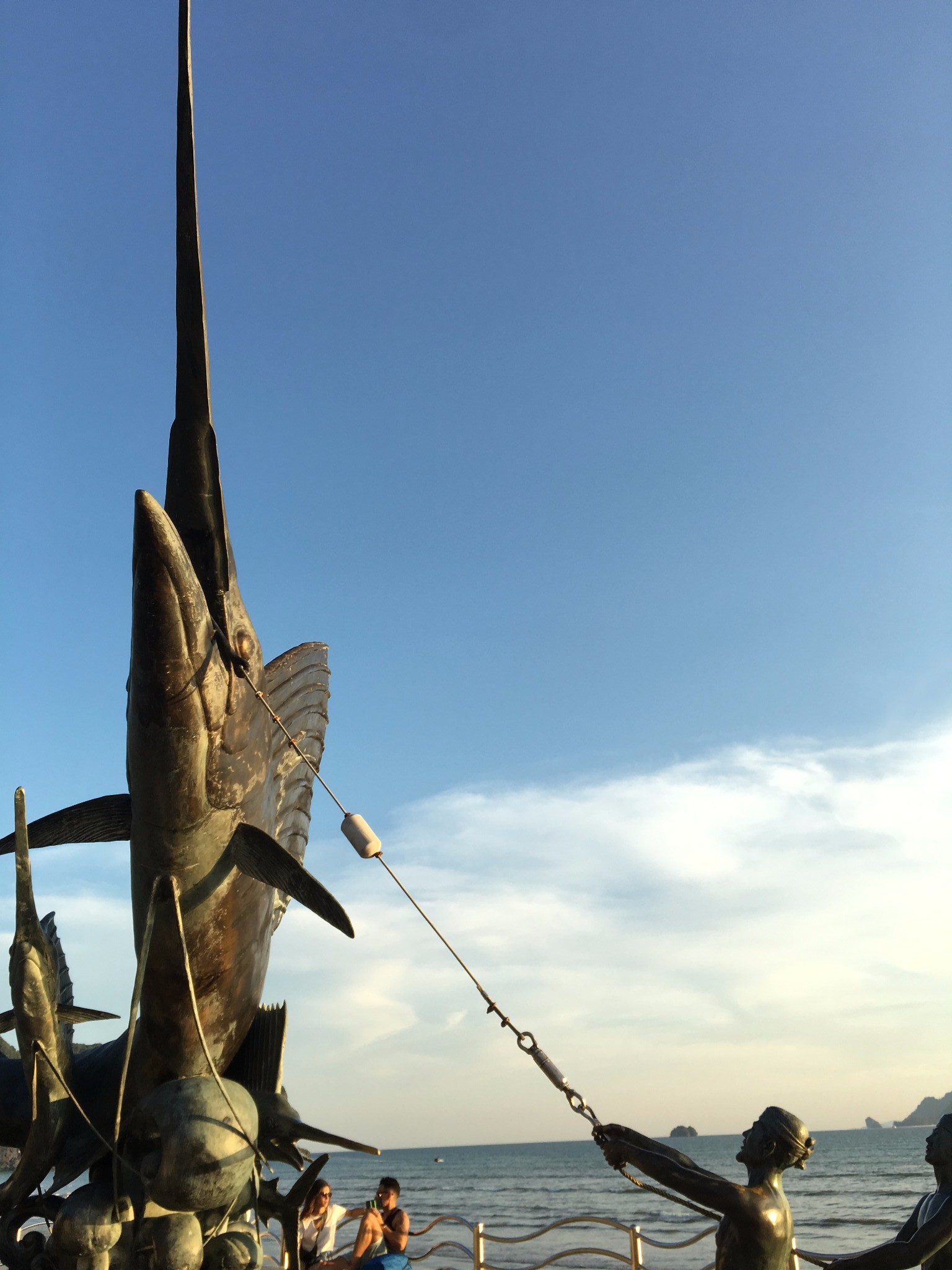奥南 海滩码头标志建筑-剑鱼雕像,出海基本都在这里集合出发。
