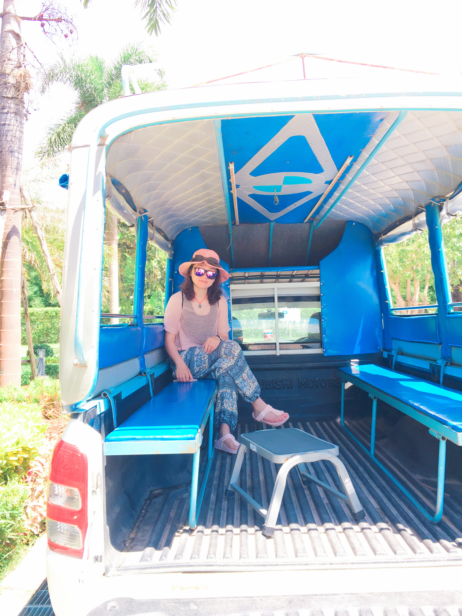酒店班车就是双条车,这是小姐姐后来在班车上凹造型拍的