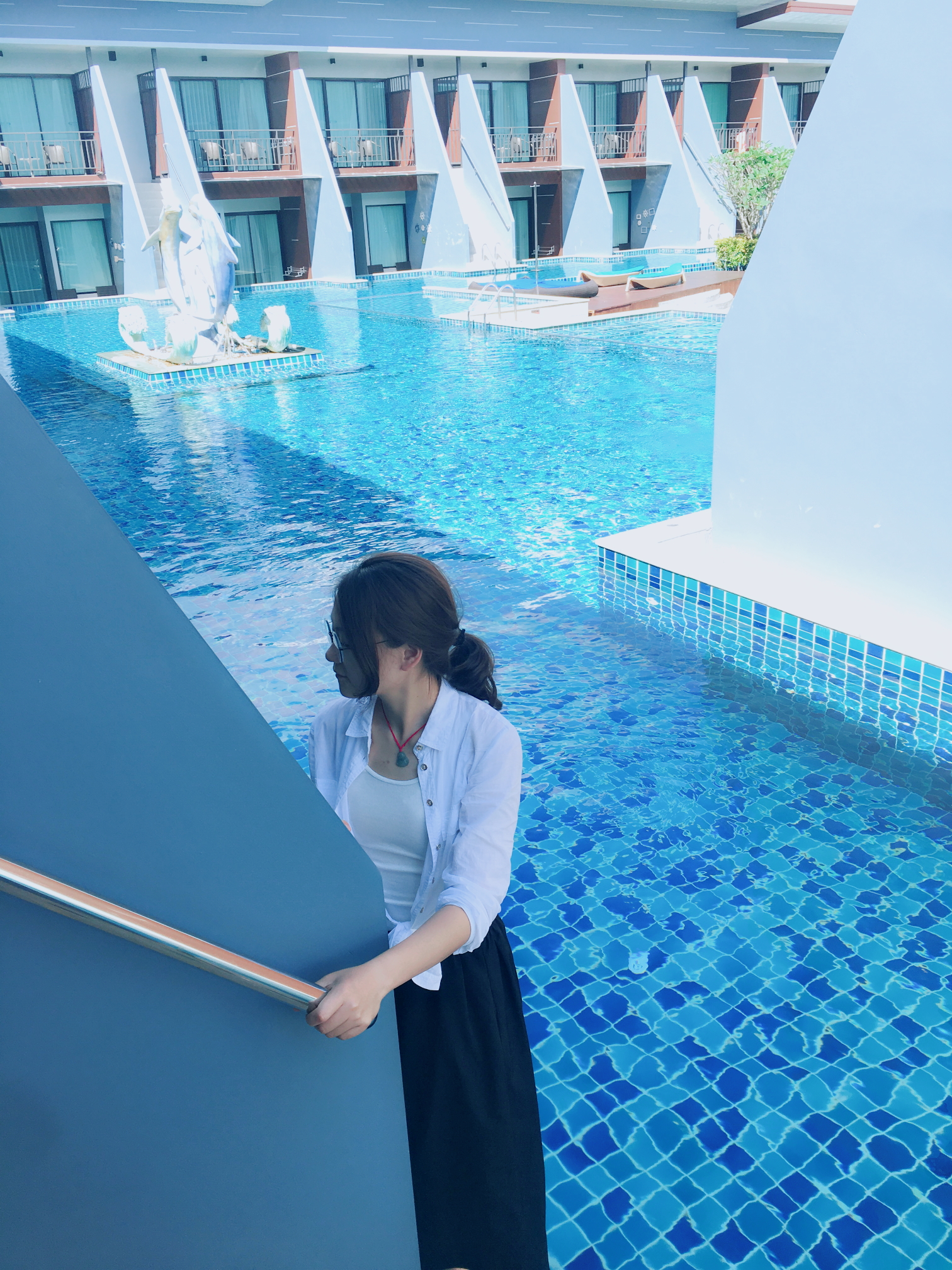 给我们安排的房间在2楼,还没到房间,首先映入眼帘的就是这个蓝蓝的泳池。