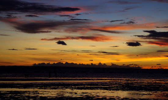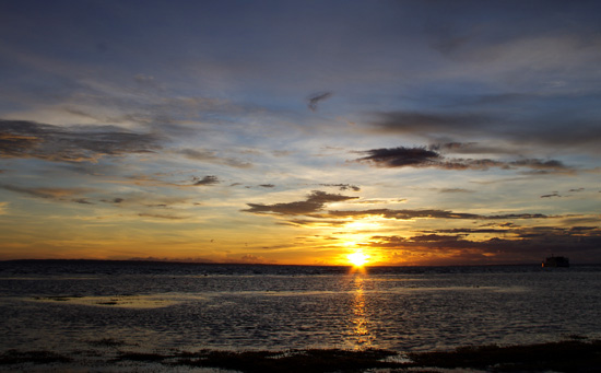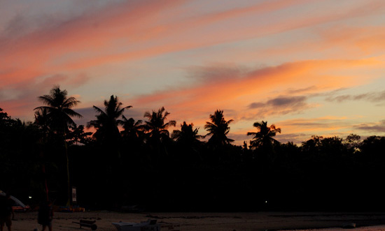 回到Bantayan镇上的车站,天色也在慢慢暗下去。已经没什么班车回Sta.Fe,反正要租车,两人就自个忙活自个儿的去了,Michelle去买她需要晒伤的药,而我被前方那抹晚霞所吸引过去。很美很震撼。没有站在那偌大的海边根本体会不到那种感觉。