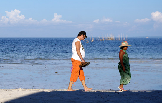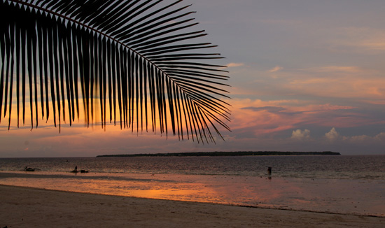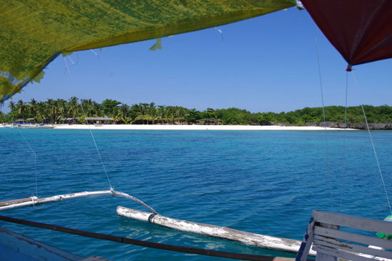 船岸还未靠稳,就有很多当地的菲人跑上船来想帮别人提包挣点小费。我们还好都背包,两手正好够用。Anges继续北上回他Bantaya的老家Madridejos,而我们是在游人较多,海滩比较漂亮的Sta.Fe 停留。Anges帮我们叫了三轮车去酒店,20P两人。当地人就是好,别人宰不到你,而且还不用交Terminal Fee。约10分钟到我们住处Beach Placid Resort 。1800P/晚。出门就是海,算是圆了一个住海边的梦。
