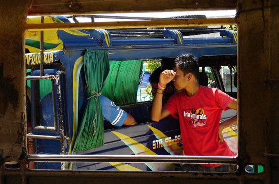 坐上菲国很有特色的Jeepney,继续北上。我们就像是被关在笼中,具有观赏价值的动物。一路上总被人盯着看。Jeepney虽然车比较破旧,但还是很舒适的,吹的是自然风,时不时路旁冒出些艳丽的花儿,一路上也算是赏心悦目的~ 最重要的是节约成本,约40分钟车程25P。