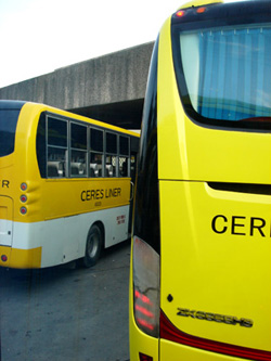 一到车站,就有人来售Terminal Fee 5P,网上所有信息压根就没有提过一车站还有这费用。所以我们没理睬直接往黄色巴士走去。我又开始犯难了~ 两车前都有Hagnaya字眼,哪台车才是我们的目地的。周旋问了两人,我还是不是特明白,可能是因为我英语烂。最后按菲人指向上了那台空调车,150P。攻略中都说去Hagnaya的车很破,怎么现在这车干净且舒适,而且还是中国的宇通客车。在这里我们遇到了此次旅程很重要的一个人Anges, 拥有加拿大国籍的菲律宾老头。我不是个善于言谈的人,但Michelle不一样她很健谈。一开始我还提醒Michelle这个老头可能有什么不良目地,但后来我应该是完全错了。Anges给了我们很多帮助。这一路上的半睡半醒真的很难受,偶尔看看路边的风景还能提点神,一切都是新鲜的。