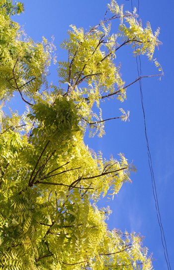 被镀上金色的椰树比蓝天下更显耀眼。