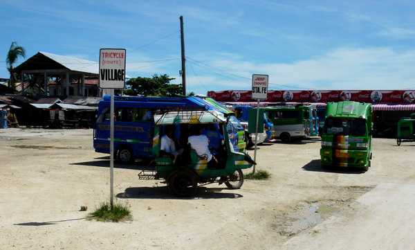 十三号早上吃完早餐就出发去Malapscua。酒店的免费车送我们到码头,返程船票170P每人。 去买船票时交了5P Terminal Fee, 去候船室时又交了5P Terminal Fee,没完没了的Terminal Fee。天气有些转阴,虽然有些许阳光,但海上风浪较大,船在风浪的带动下上下颠簸,上船没多久我就晕船了,只能低着头坐那什么也干不了。到岸后坐车50P去Bogo转车,Bogo就是一中转站,很多Cebu的车都会在那停留。从Bogo再转车43P去Maya。上车时看到右后方坐着一位戴着太阳镜,看上比较斯文的亚洲人。不是中国人就是韩国人要么就是日本人。在岛上的时间经常有人问你是来自韩国还是日本,看来去的中国人还真是非常少。别人没说话那我们也没必要主动去攀谈。这一路上的车开得很猛,也有约一个多钟才到Maya。