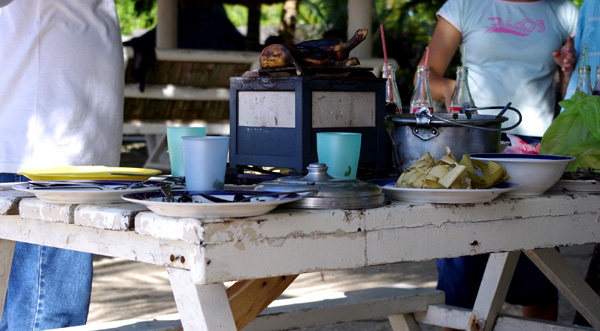 野餐的主食主要是烤香蕉,椰子皮包米饭,鱿鱼,鱼汤。。。味道都比较清淡。在班塔延的这几天吃得最多的就是鱿鱼。味道最好的还是在酒店吃的带点辣辣湖南风味的鱿鱼。