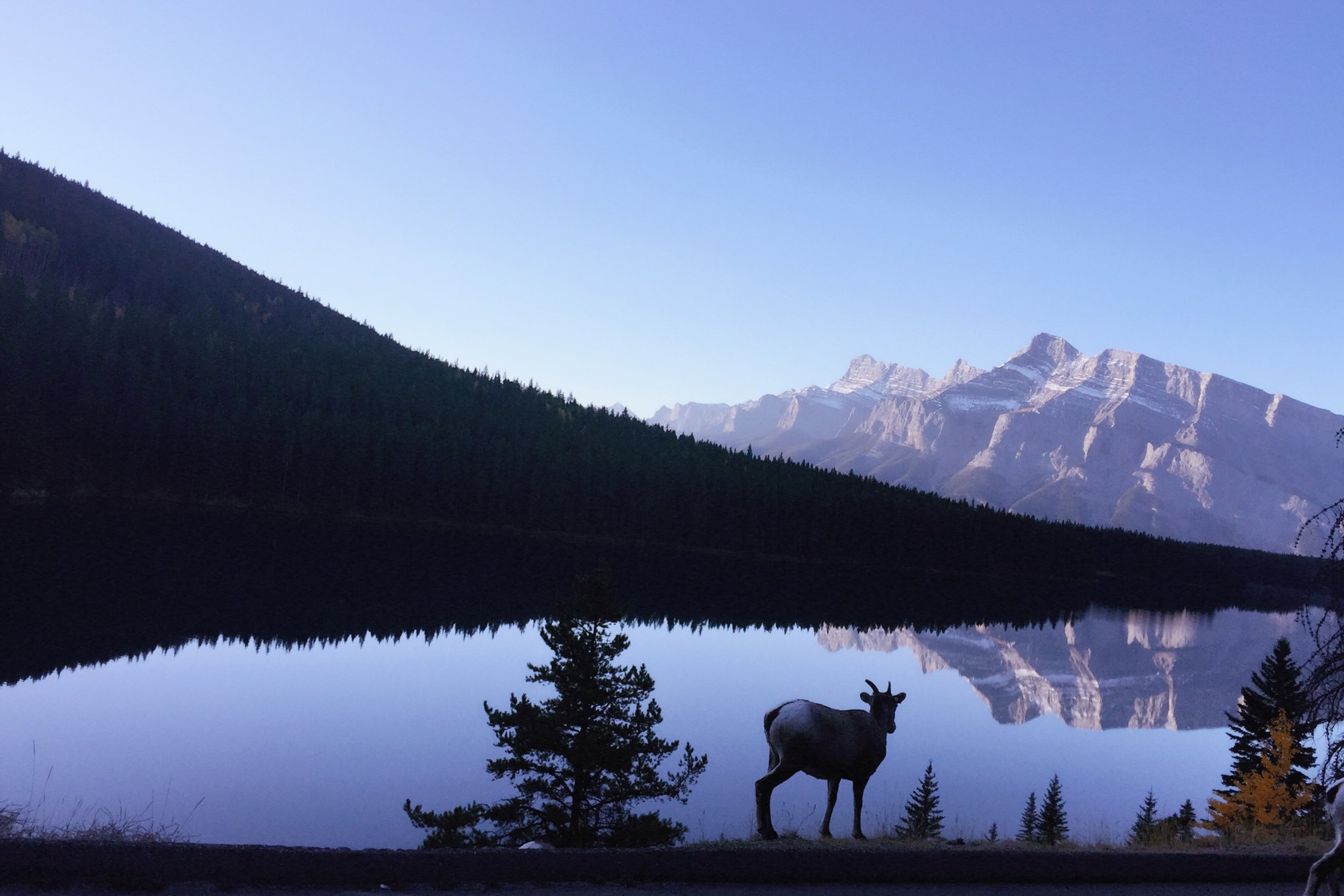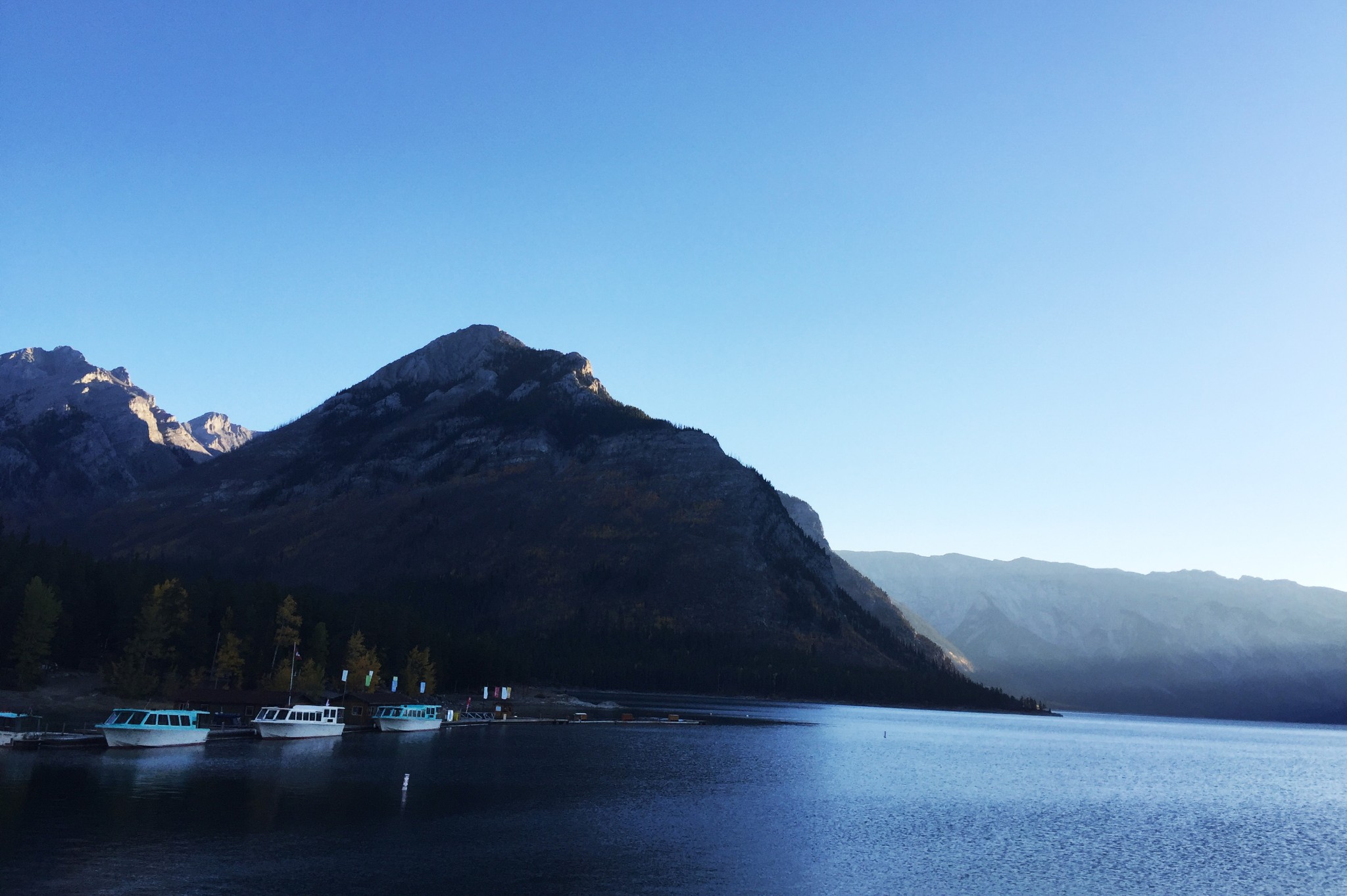 今天一天开车在banff班夫国家公园里浪,Two Jack Lake双杰克湖——Lake Minnewanka明尼万卡湖——Lake Louise 路易斯湖——Sulphur Mountain硫磺山——Canmore坎莫尔