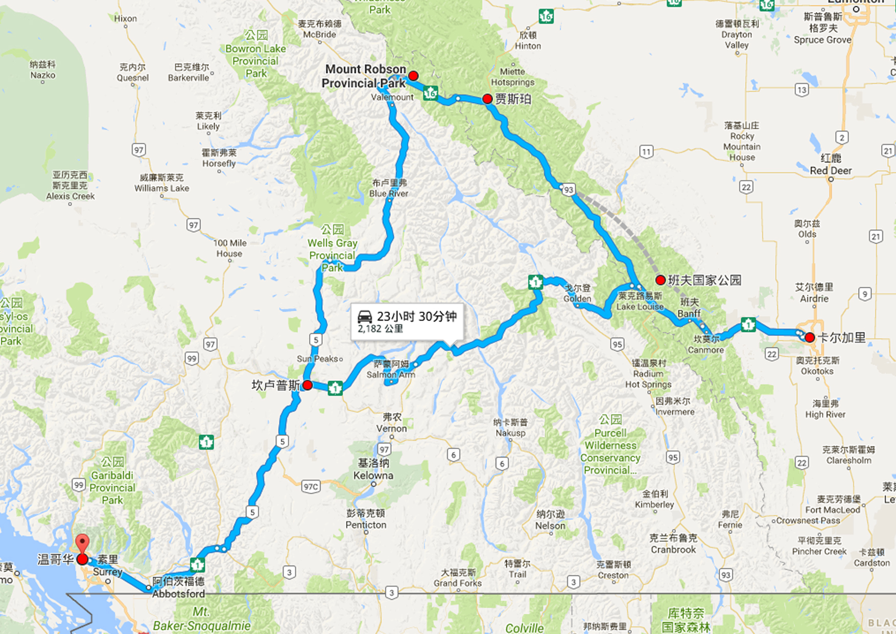 我们此次的行程,Vancouver温哥华——Kamloops坎卢普斯——Banff班夫——Calgary卡尔加里——Banff班夫——Jasper贾斯珀——Mount Robson Provincial Park罗伯森山——Kamloops坎卢普斯——Vancouver温哥华。