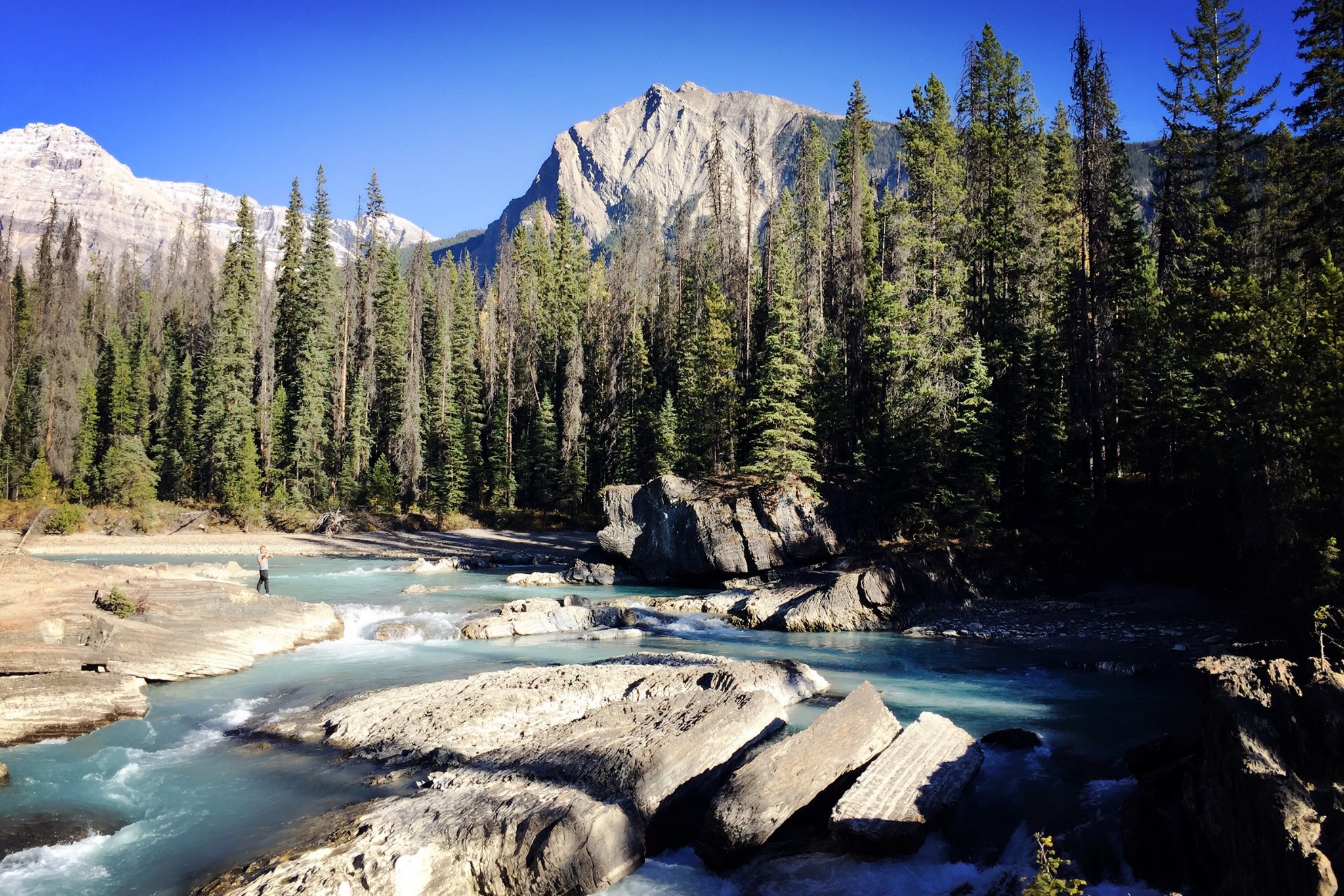 一早从kamloops坎卢普斯出发去Banff班夫国家公园,开车时间很长,600公里的路程开了差不多6个小时,边走边玩。途中经过Yoho优鹤国家公园,因优鹤最著名的欧哈拉湖要提前三个月预定,与我们此次无缘,于是去了优鹤的其他景点——Natural Bridge自然桥和Emerald Lake翡翠湖。