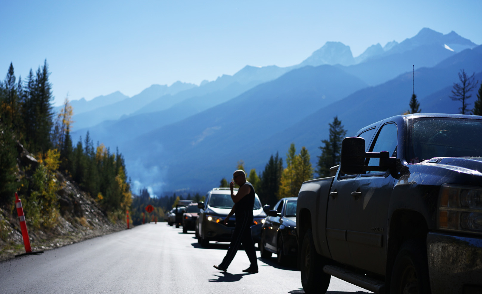加拿大国家公园经常修路,因为往返各只有一条行车道,所以修路的时候往返车辆共用一条车道,所以经常塞,不过等候时间不长。有时候碰到野生动物在路上,也会塞车,大家都会等着野生动物走了才开车,所以在路上经常过桥洞,因为桥是修给动物过马路的。我们碰到一次车祸,塞的就很久了,等了一个多小时。