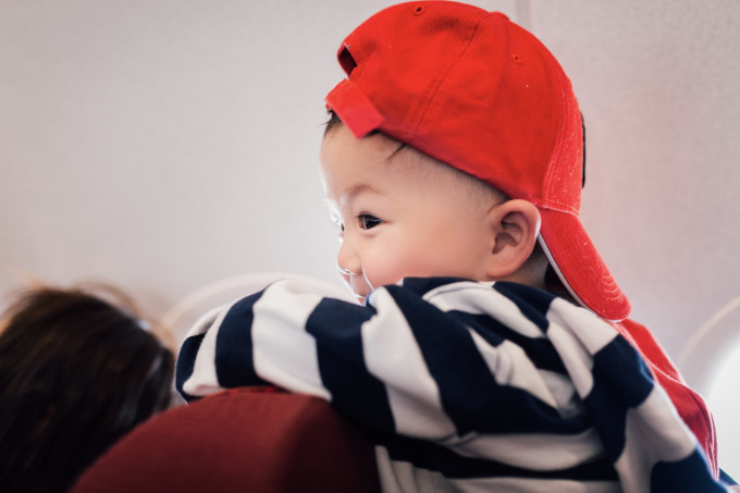 记得几个月前苏梅岛的时候,"泰山"除了睡觉,就一直在飞机的过道上走来走去,到处打野招呼。这次就要安分很多。不过在自己的座位上爬上爬下,还是难以避免,幸运的是前排是同行的朋友,他们会忍耐包容泰山的恶作剧。
