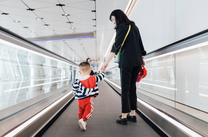 有孩子,总会提前一些到机场,机场的一件一物像磁石一样引导着泰山,打磨着办理登机手续前的时光。