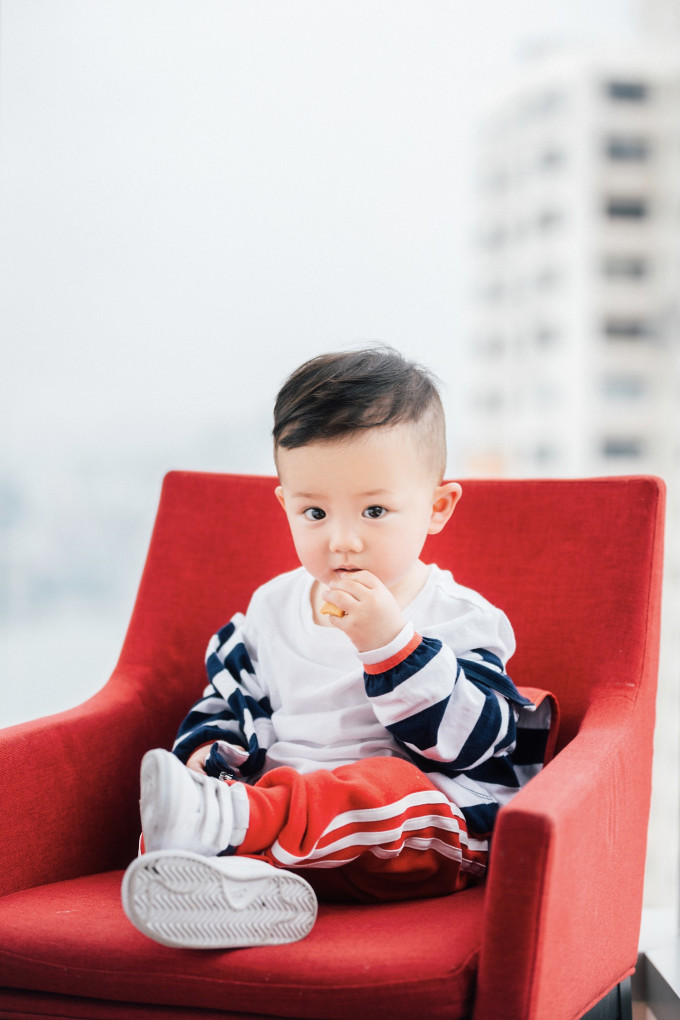 弟弟很听话,一直坐在自己的儿童座椅上。