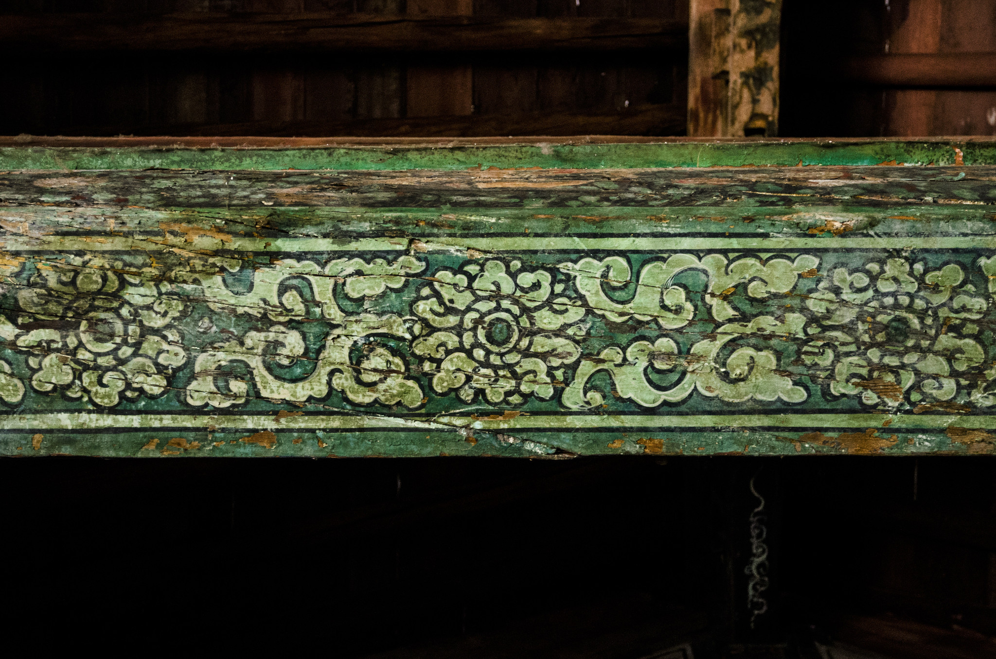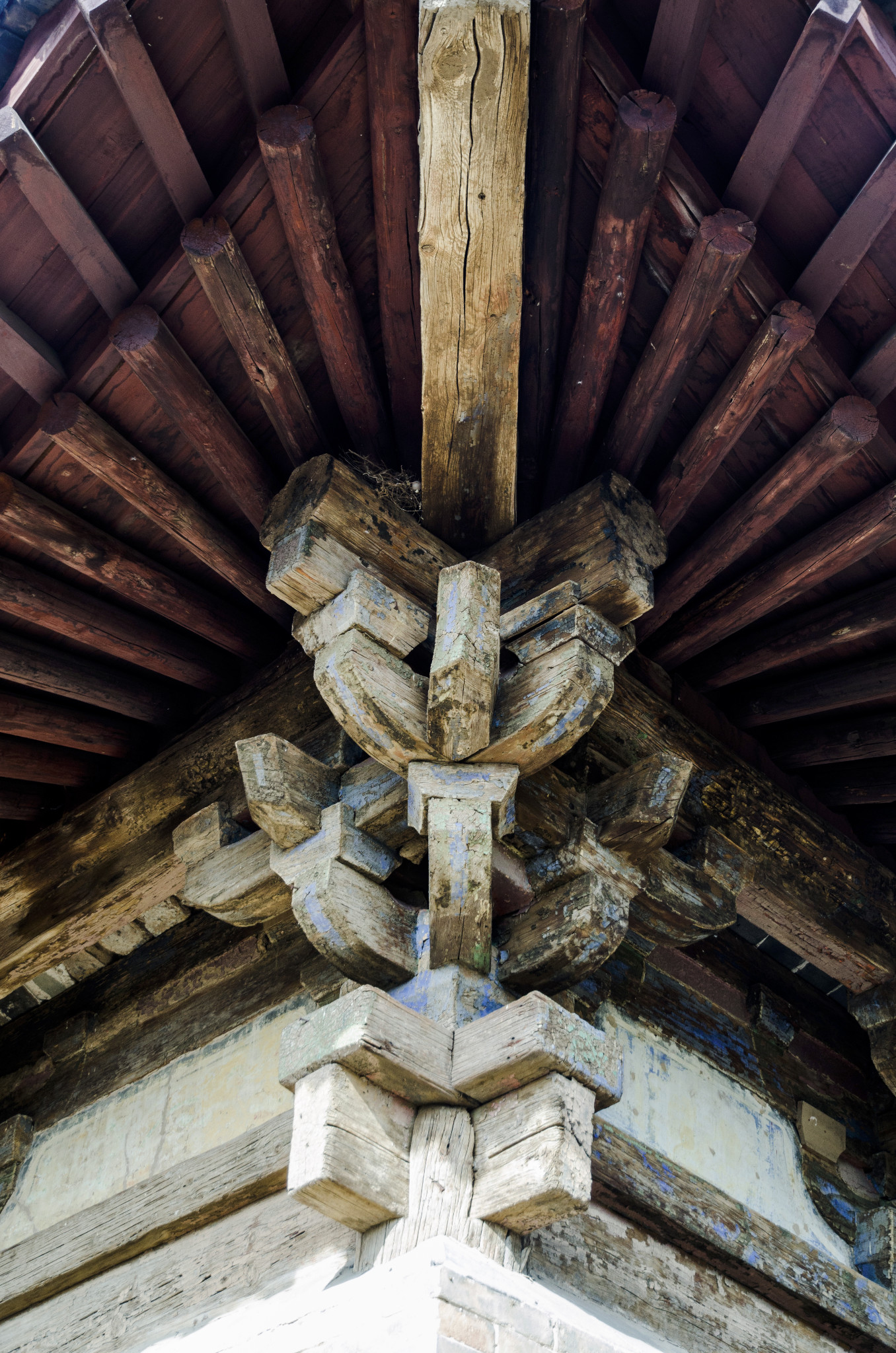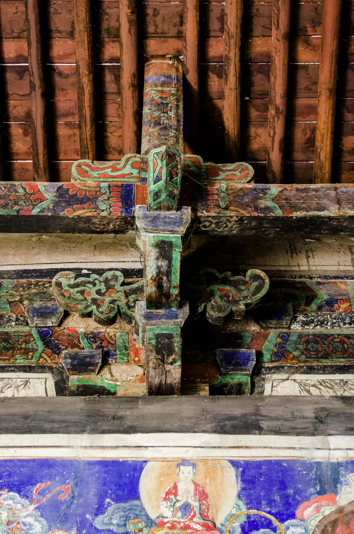 大雄宝殿,金代遗构,元、明、清均有修葺,举折平缓舒展,翼角升起显著。