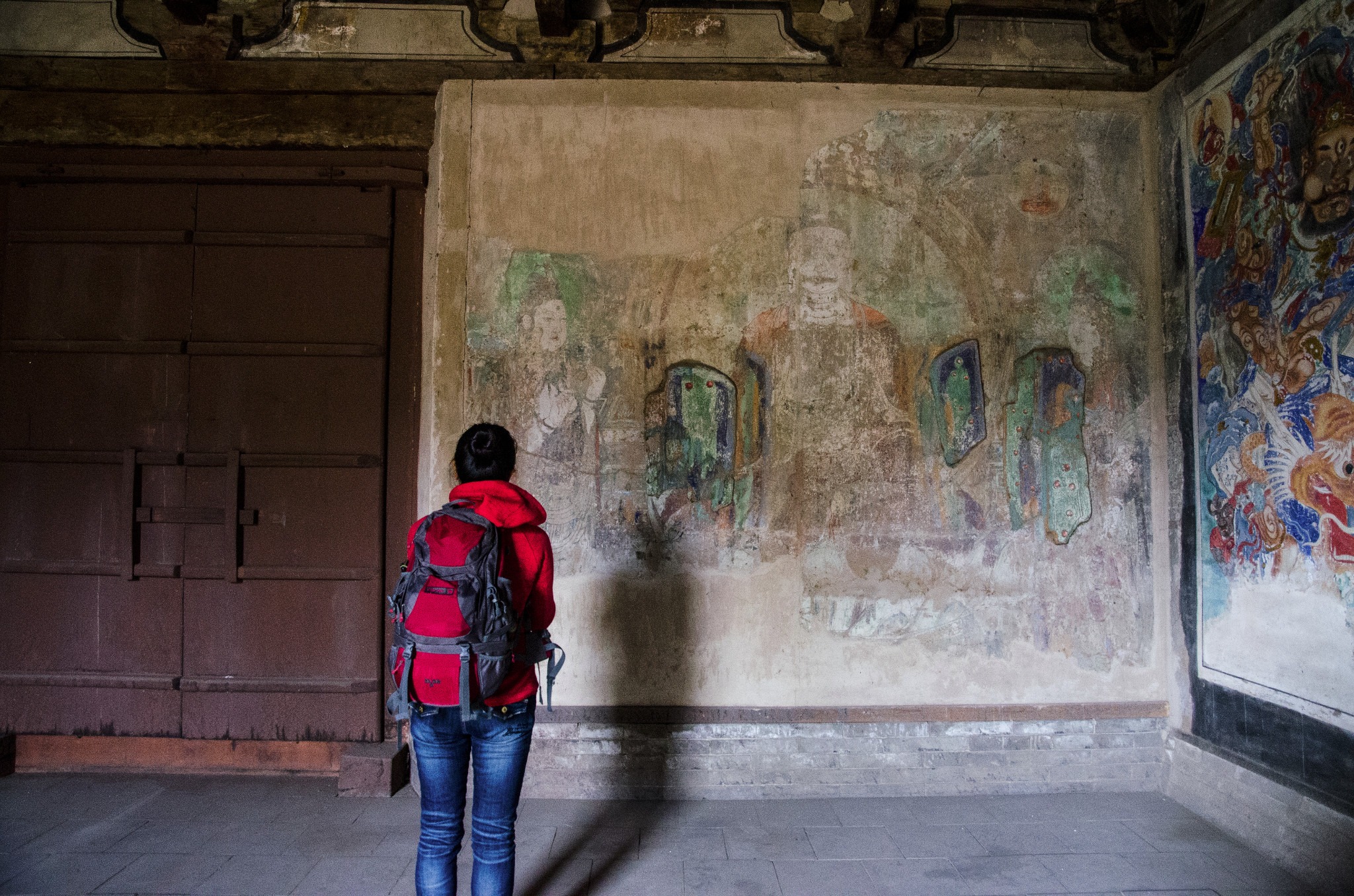 北墙东侧,有壁画残留,墙上剥离痕迹明显,里面一层年代更久,明显早于明王像,水准也更胜一筹。北墙西侧,啥都没了,脑补吧。