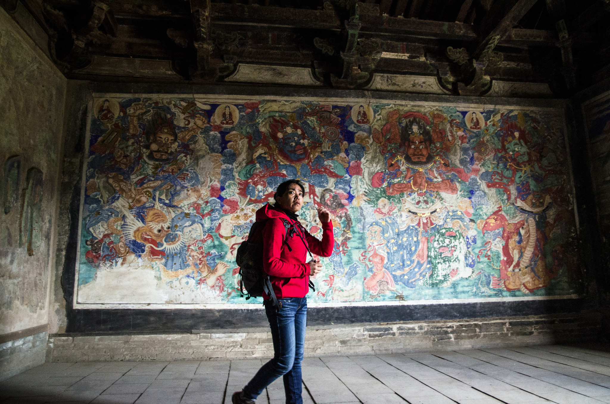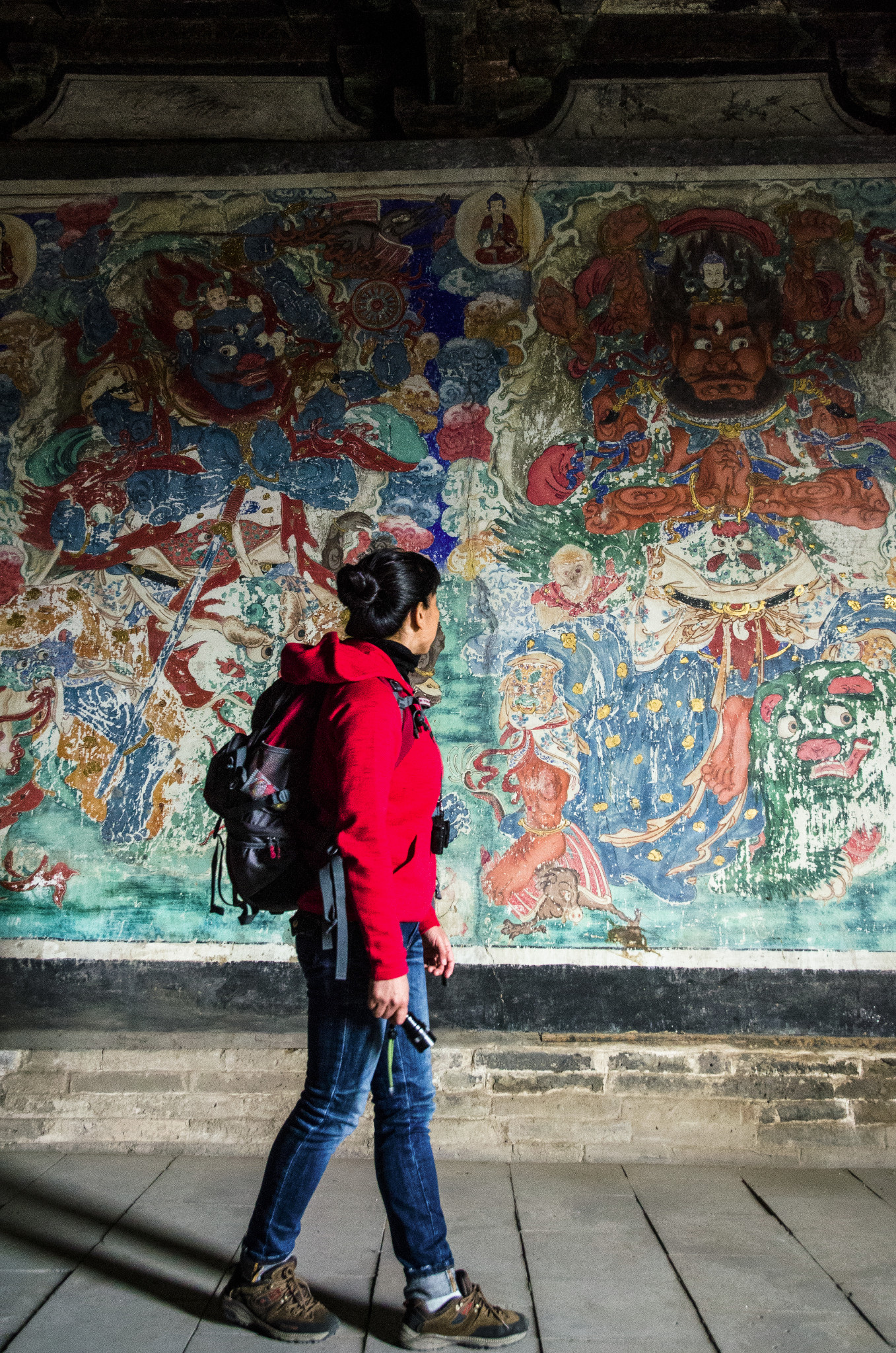 殿内东、西、南三壁存有壁画73.64平方米,明代作品。工笔重彩,沥粉贴金,从形式上模拟浑源县城内永安寺十大明王,虽然技艺不算纯熟,但野趣盎然,嚣张跋扈。