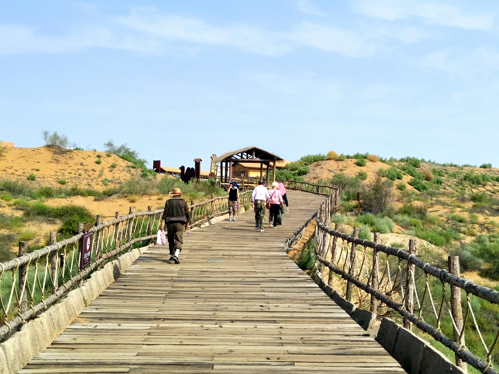 国家AAAAA景区――沙坡头景区由于国道经过且分成南北两大区域,北区以沙漠景区为主,配套为骑行骆驼,及沙漠越野汽车等。南区以黄河景区为主,配套有汽艇,羊皮阀子漂流及滑沙。因为己来过,并且要赶路,便迅速分别进入南北二个景区,走马观花,拍了几张照片后,大约在景区只呆了一个多小时,便继续开车返程。