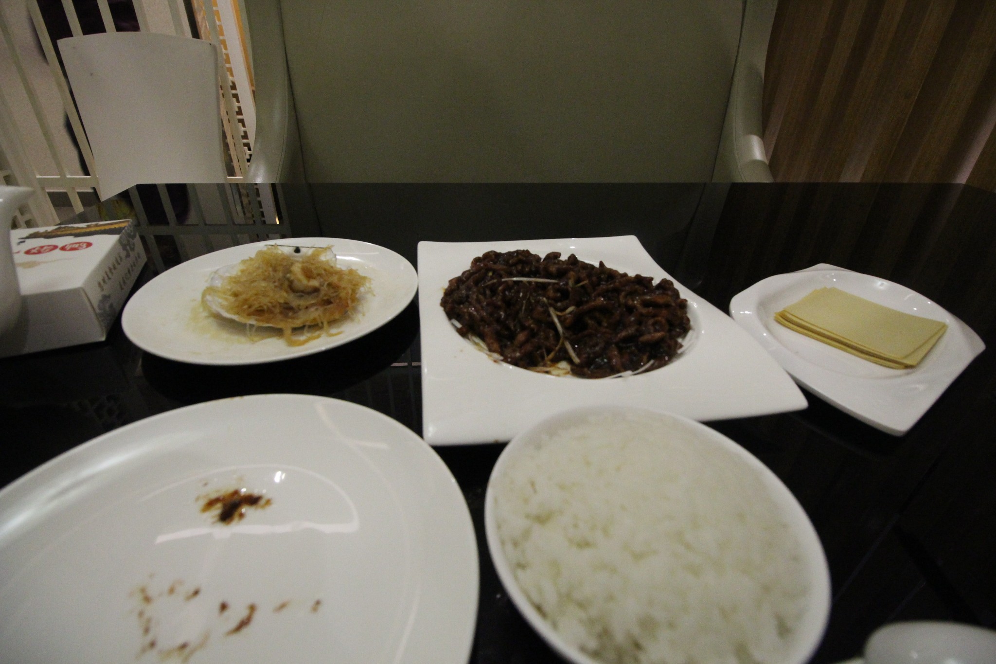 这是我在酒店四楼餐厅吃的一顿晚饭,当地人的口味应该是比较重的,重盐。这里做菜的咸如同合肥城中来自皖南皖西山区和皖北淮河流域的人喜欢的口味一样。