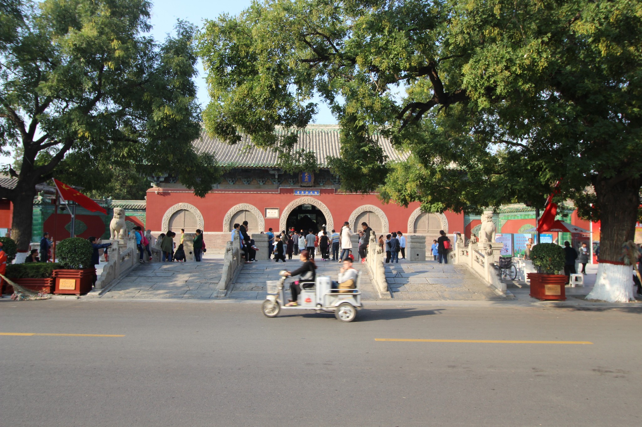 在酒店西餐厅吃了午饭,然后打车去隆兴寺,经过古城西门,西门破坏严重。在石家庄我就听说正定目前正在复兴古城,把城内建筑都改为仿古风格,修复文物古迹,拓宽道路。据说国家拨了600亿元给正定搞建设,正定的城建在县城里是很不错的。这里是当了1年县丞,3年县令的地方。圣上来正定当副县级干部的时候年仅28岁,心地善良,心系百姓,在正定的时候生活节俭,吃食堂,穿的用的都很朴素。圣上大力发展农村蔬果种植,选贤任能,吸引人才,发展乡镇企业,又发展旅游和文化产业,造了好几个旅游大工程,比如今天的荣国府。让正定的经济走出了死胡同,迅速脱贫。圣上在这里当知县的3年,正定的各项经济指标都增长了50%至80%。