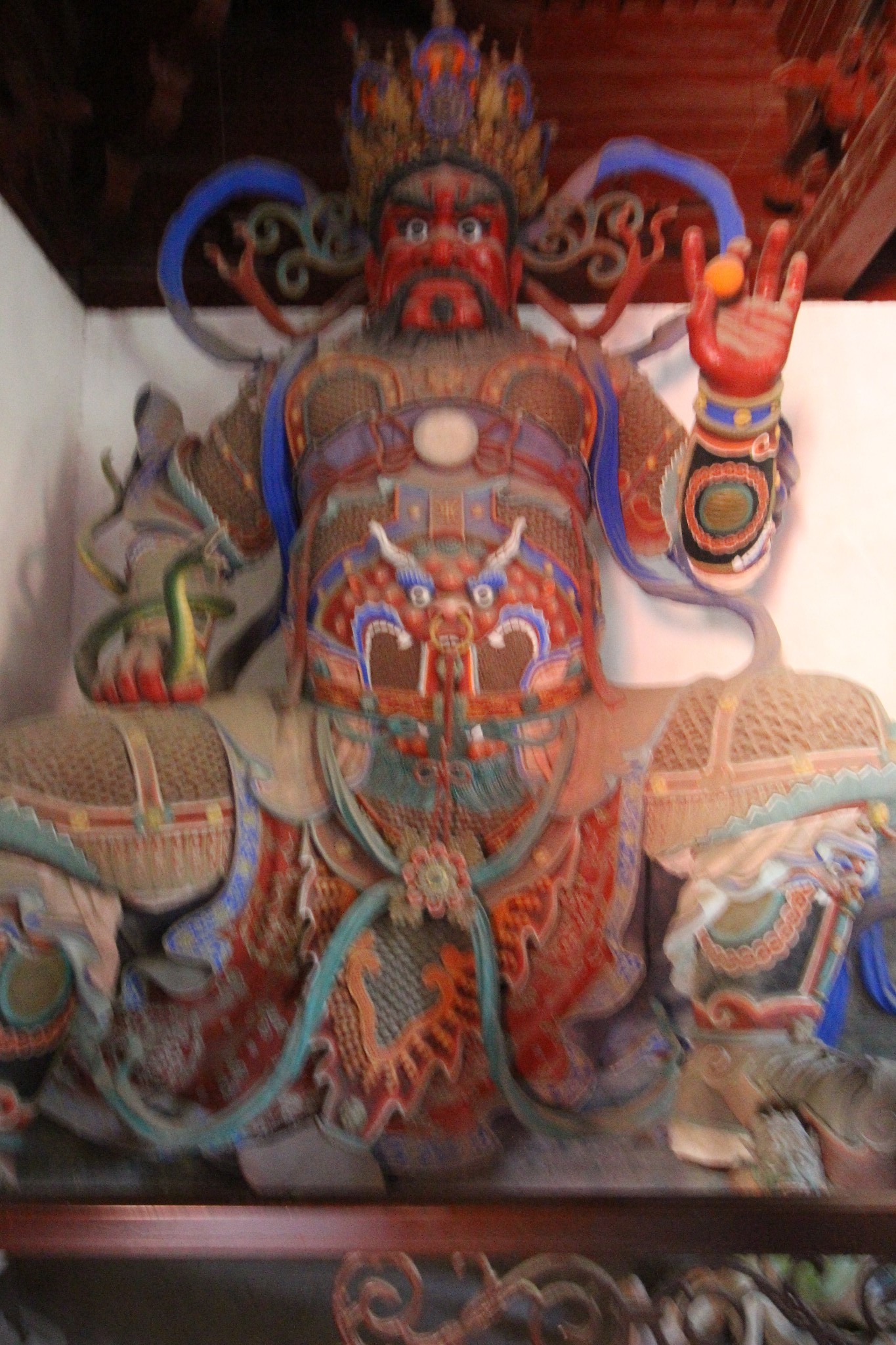 在大殿四间伸出的抱厦内,门两侧绘着佛教二十四尊天,每面墙壁3位,一个抱厦6位,