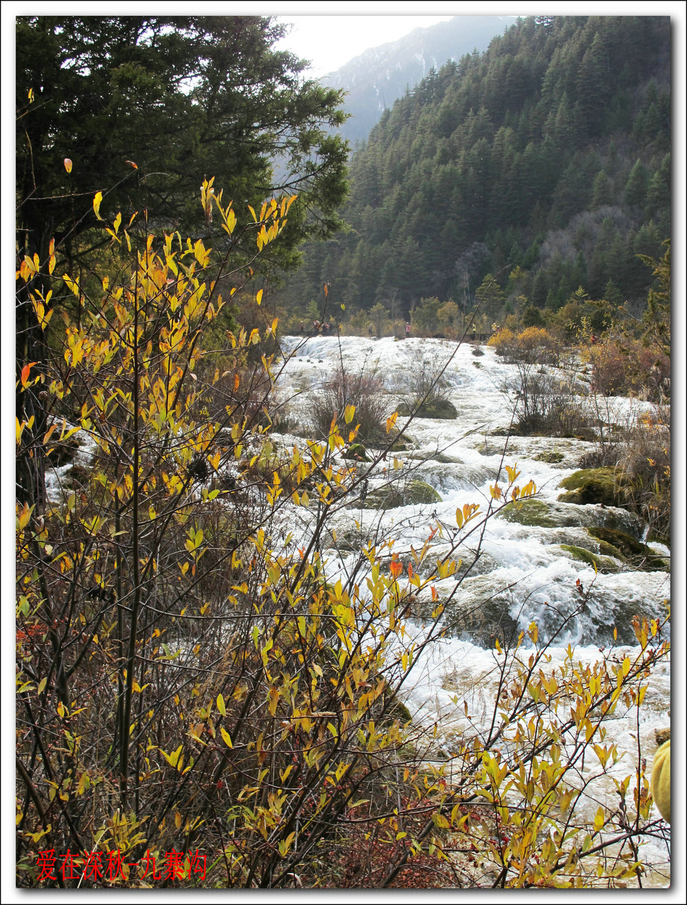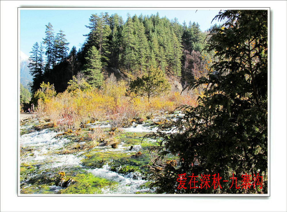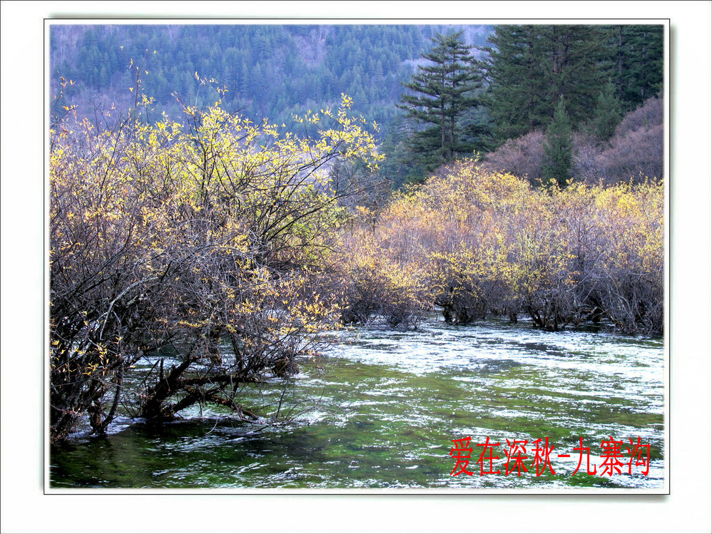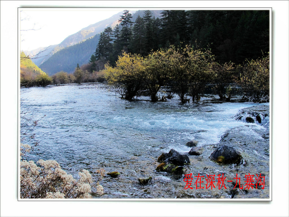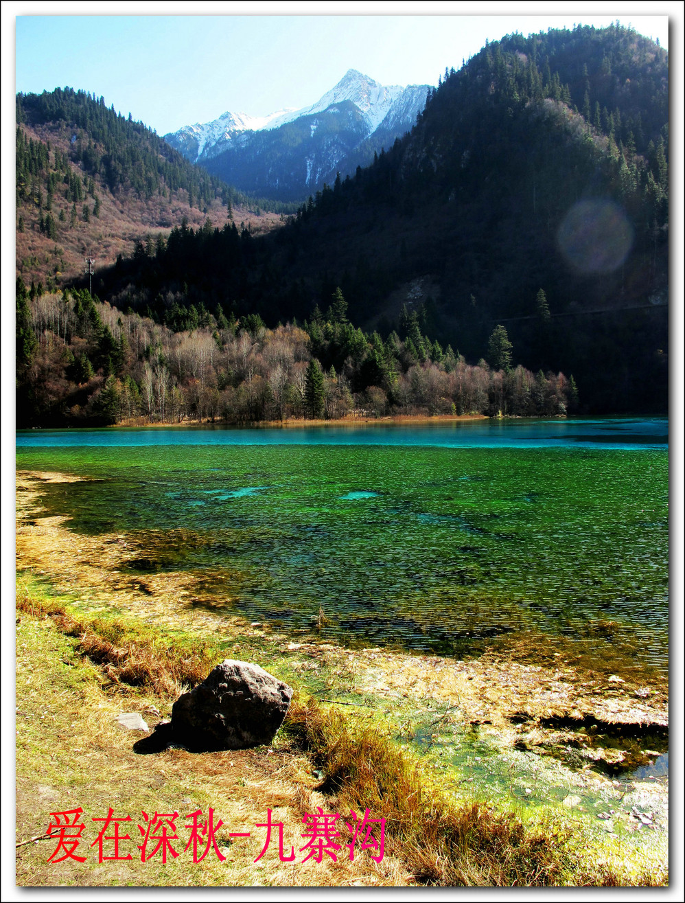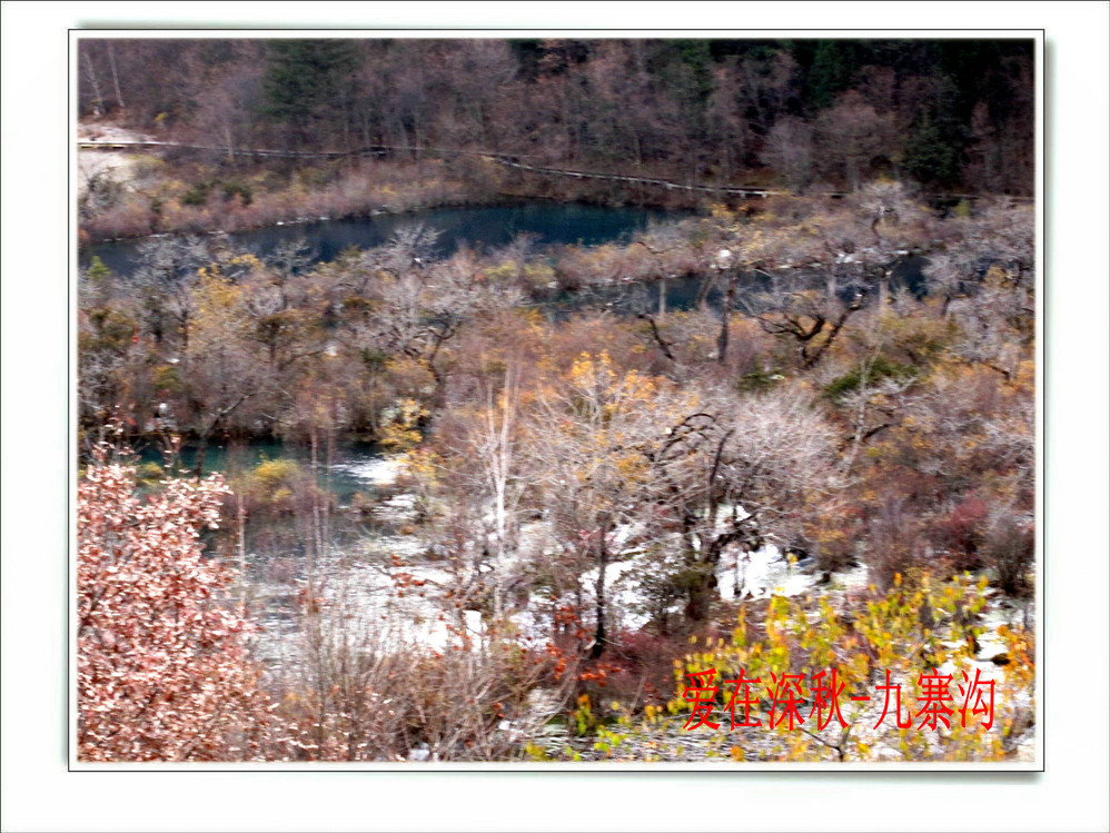 十年前去了一趟九寨沟,坐汽车前往,在路上堵了十个钟,留在脑海中的印象最深的是同事们一路从成都一路唱着到九寨,又从九寨唱上黄龙,导游在边上说什么高原反应都没感觉。好开心,但现在都翻不出几张当时的照片了,上周在成都,就顺便参加了一个三天团,双飞,非常成熟的旅游线路,到达的第二天行程超满,七个小时候在九寨沟景区内活动,晚上到藏家体验了个把小时藏族生活,跟着又观看了上一场命为“藏迷”的情景晚会,难得的是当天进去的人数只的几千人, 沿途景点都有旅游车接送,在深秋九寨沟秋高气爽,虽然植被单调些,但秋水、蓝天、黄叶、雪山构成的色调,在秋日下也不失九寨的经典美色。