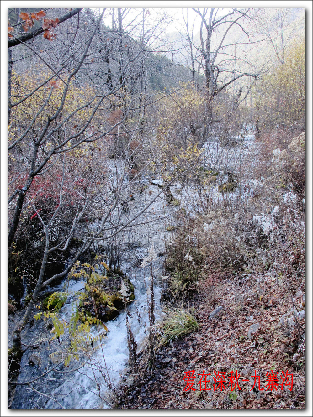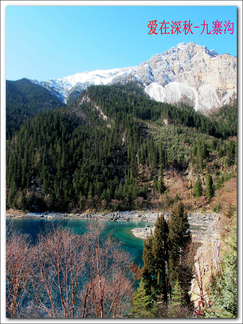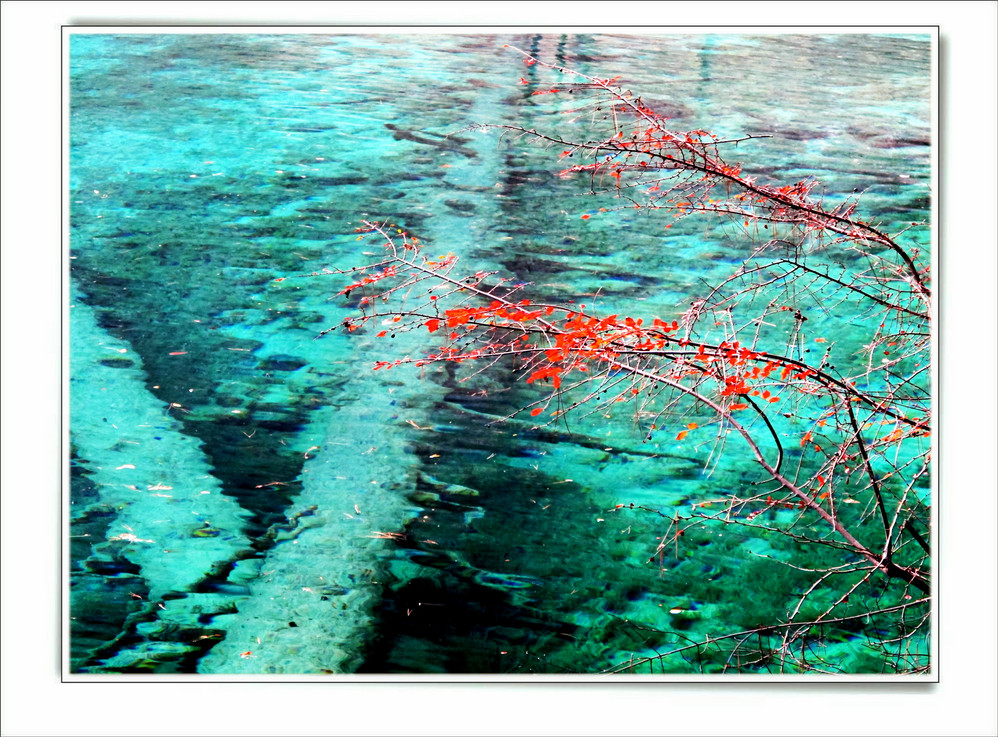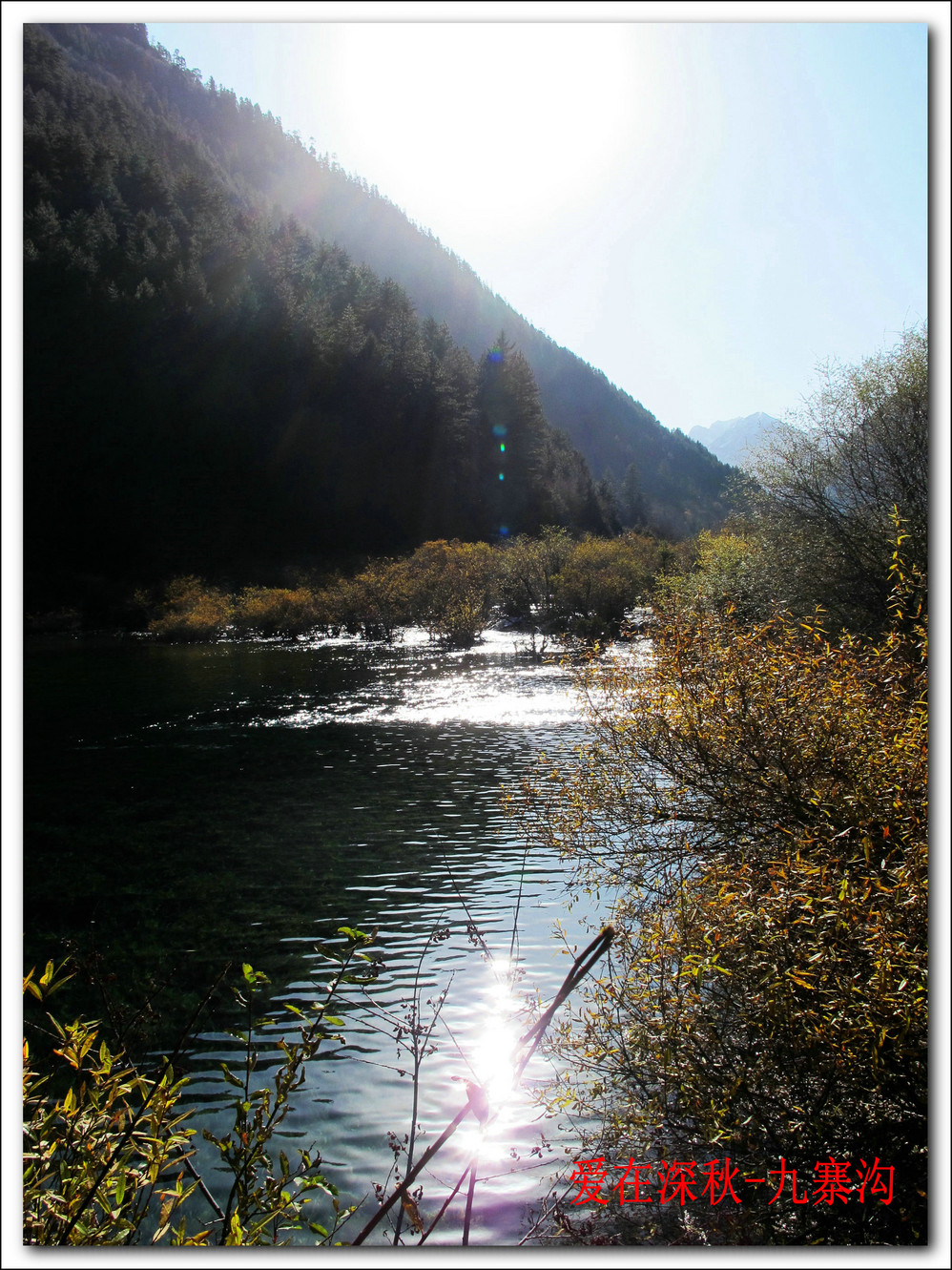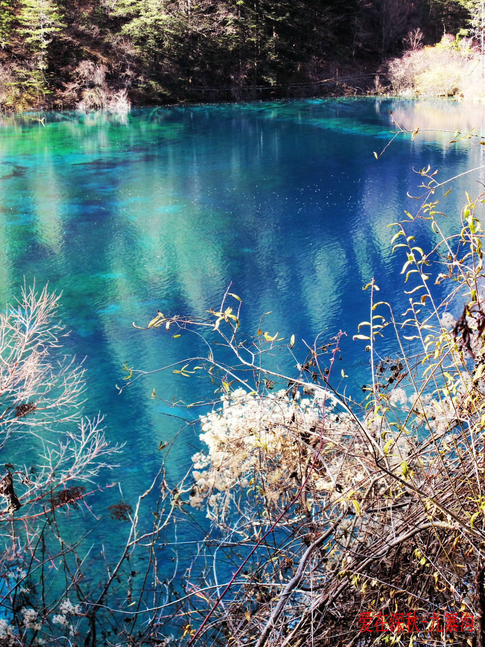 十年前去了一趟九寨沟,坐汽车前往,在路上堵了十个钟,留在脑海中的印象最深的是同事们一路从成都一路唱着到九寨,又从九寨唱上黄龙,导游在边上说什么高原反应都没感觉。好开心,但现在都翻不出几张当时的照片了,上周在成都,就顺便参加了一个三天团,双飞,非常成熟的旅游线路,到达的第二天行程超满,七个小时候在九寨沟景区内活动,晚上到藏家体验了个把小时藏族生活,跟着又观看了上一场命为“藏迷”的情景晚会,难得的是当天进去的人数只的几千人, 沿途景点都有旅游车接送,在深秋九寨沟秋高气爽,虽然植被单调些,但秋水、蓝天、黄叶、雪山构成的色调,在秋日下也不失九寨的经典美色。
