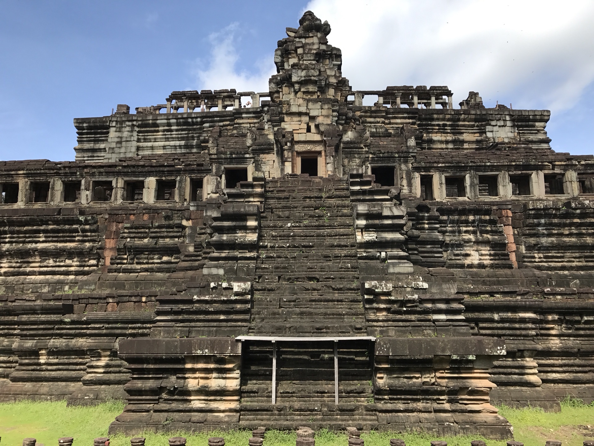 距离巴戎寺不远处,就是巴方寺(Baphuon)是11世纪中叶真腊国王优陀耶迭多跋摩二世(Udayadityavarman II,公元1050-1066年在位)于1060年修建献给湿婆神(Shiva)的国寺,它位于当时都城的中心,现巴扬寺西北200米,紧邻皇家宫殿的南围墙。巴方寺被称为世界上最大、图样最复杂的立体建筑。