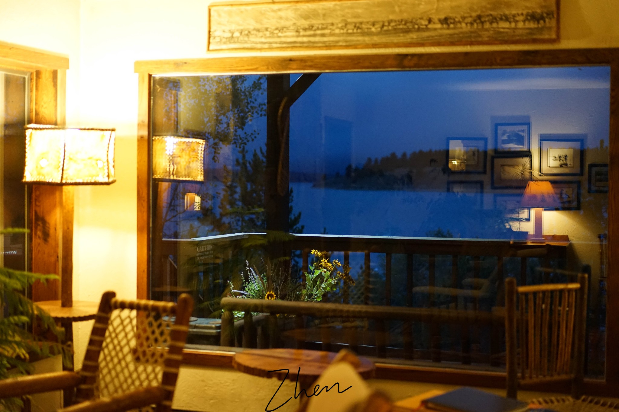 今晚上住 Signal Mountain Lodge 的小木屋,独栋木屋外都有个阳台,窗外望去有山有水。重点是这里比黄石住宿和 Jackson Lake Lodge 便宜很多。