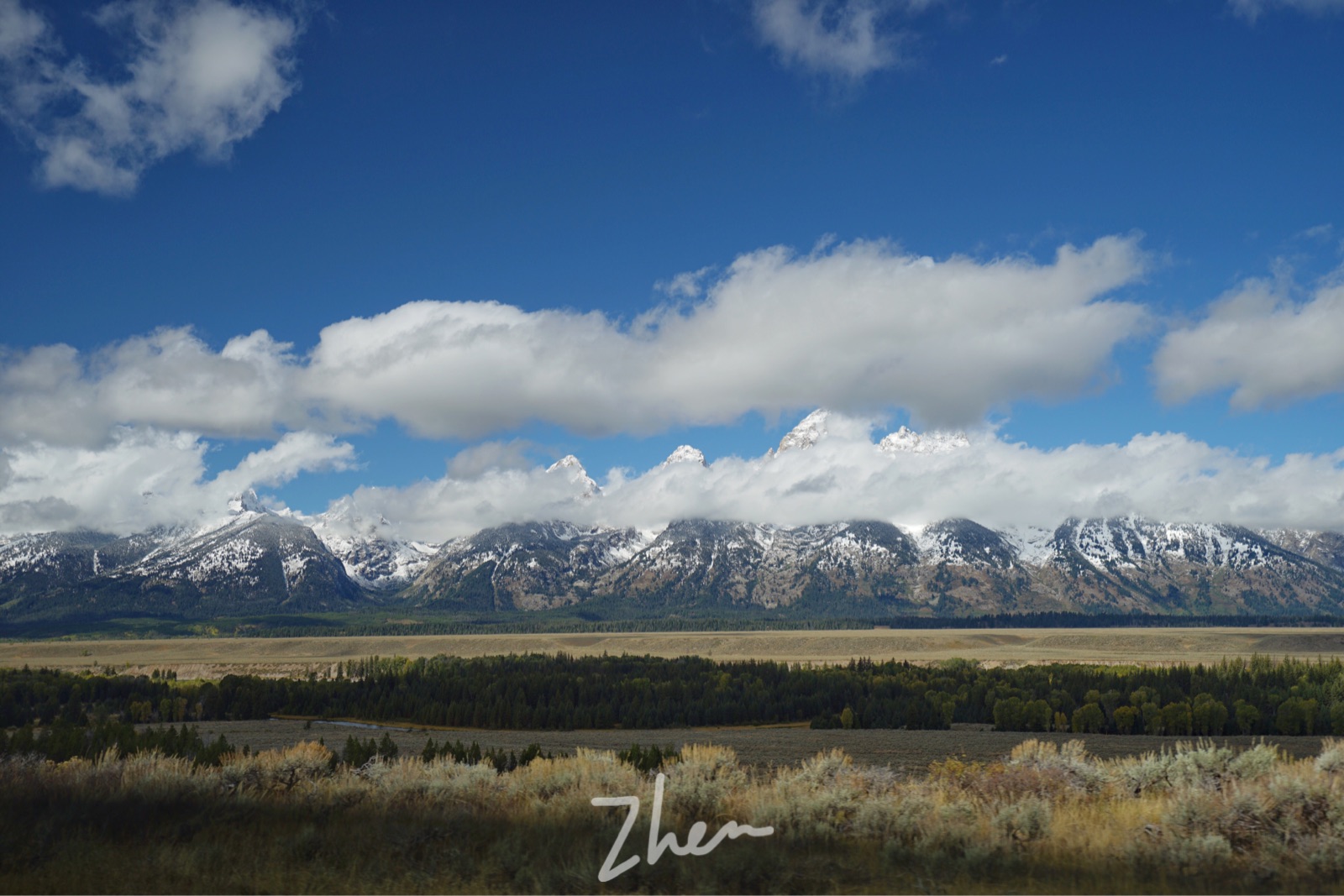 大提顿山峰群出现在路前方,终于要结束长途车程啦~